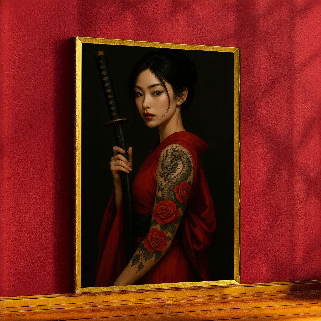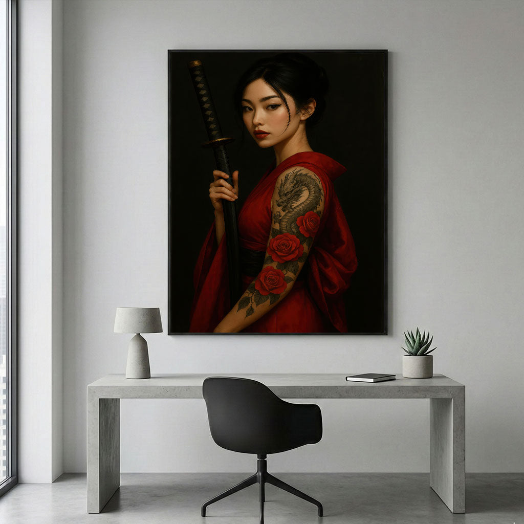 Enchanting Samurai Woman With Tattoos Canvas Wall Art