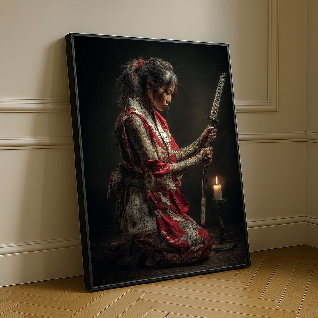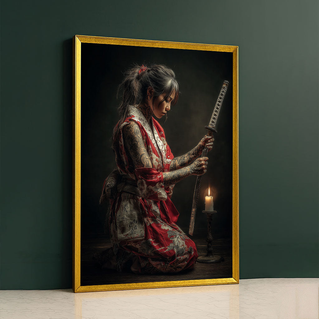 Enchanting Samurai Woman With Tattoos Canvas Wall Art