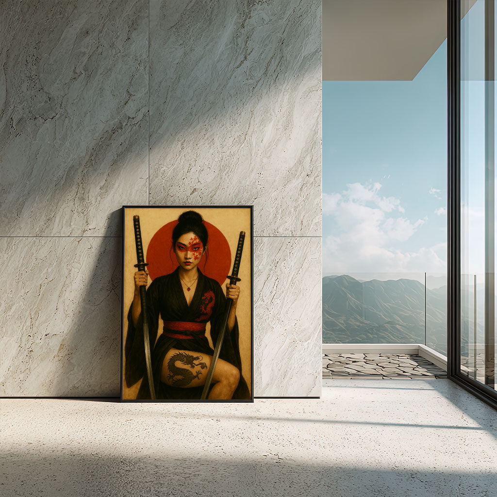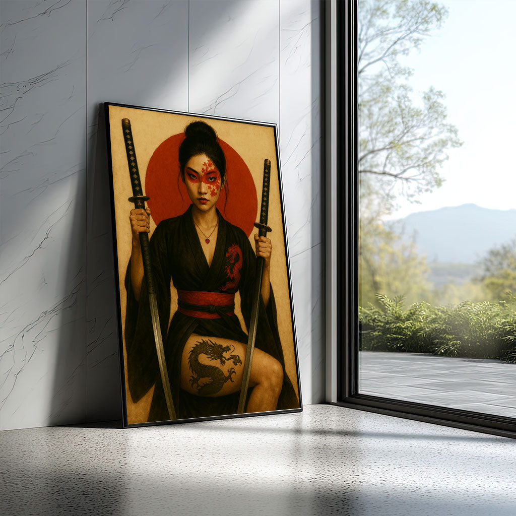 Enchanting Samurai Woman With Tattoos Canvas Wall Art