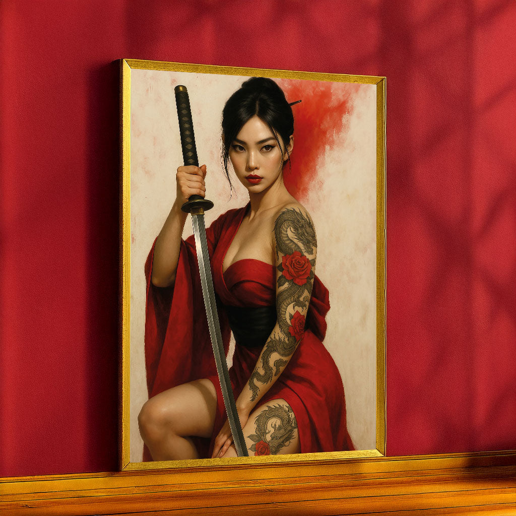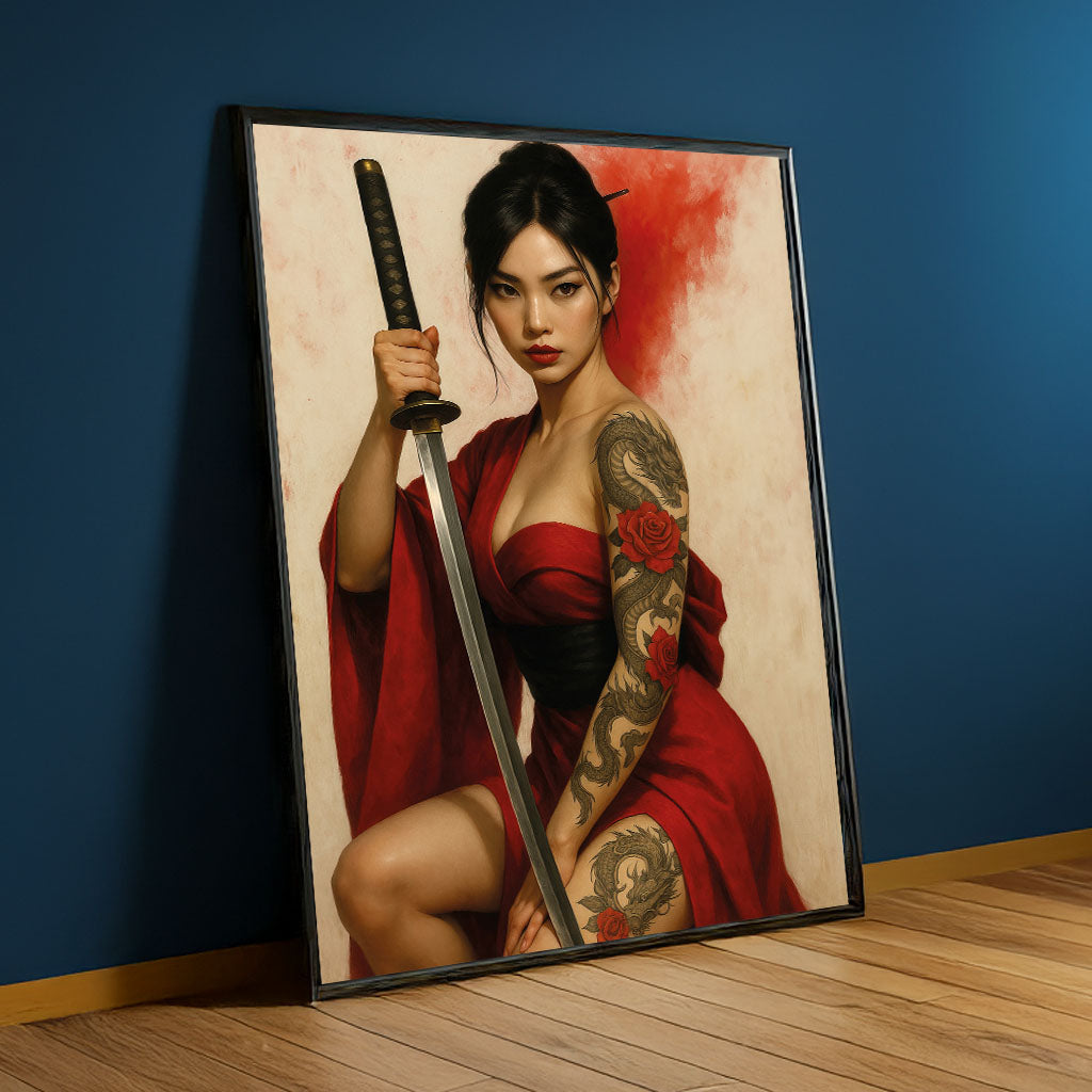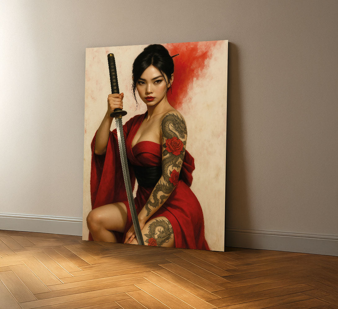 Enchanting Samurai Woman With Tattoos Canvas Wall Art