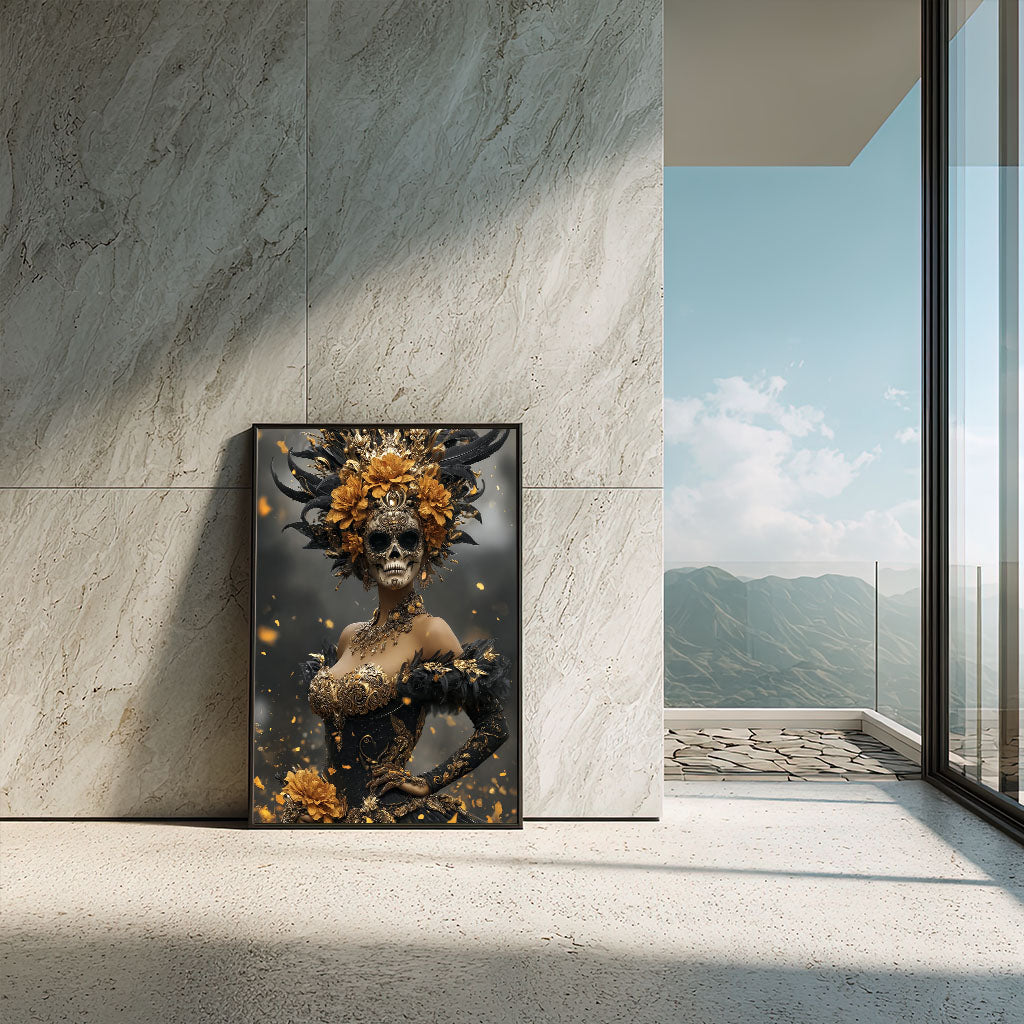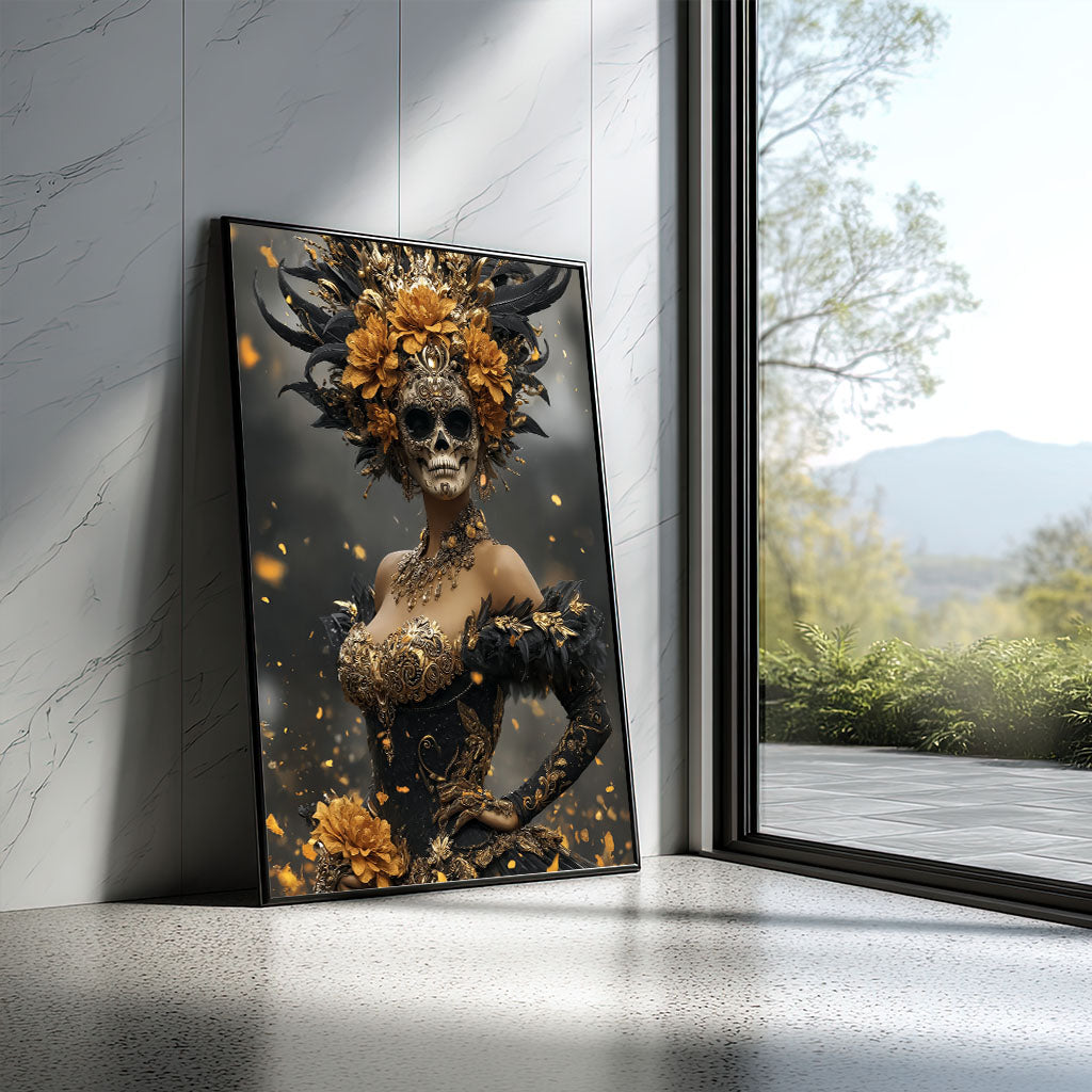 Enchanting Skeleton Woman In Ornate Attire Canvas Wall Art