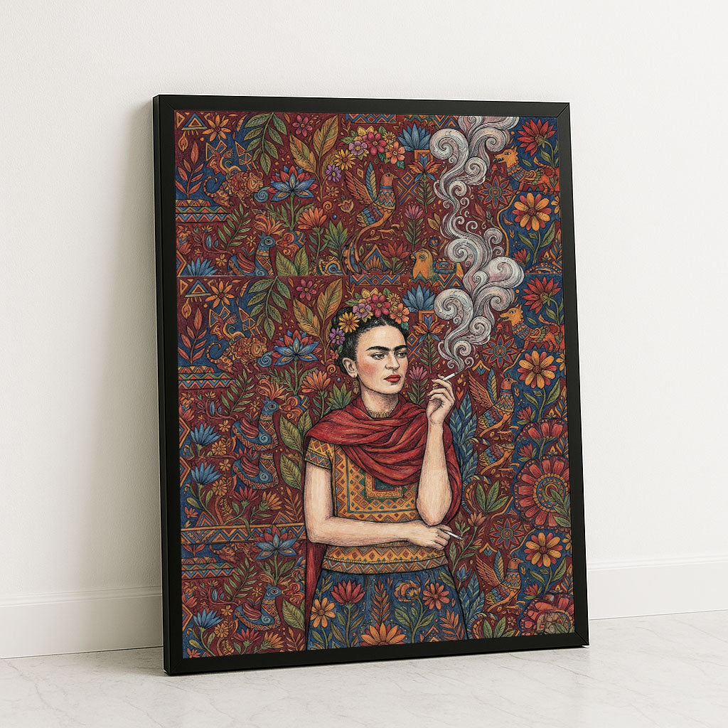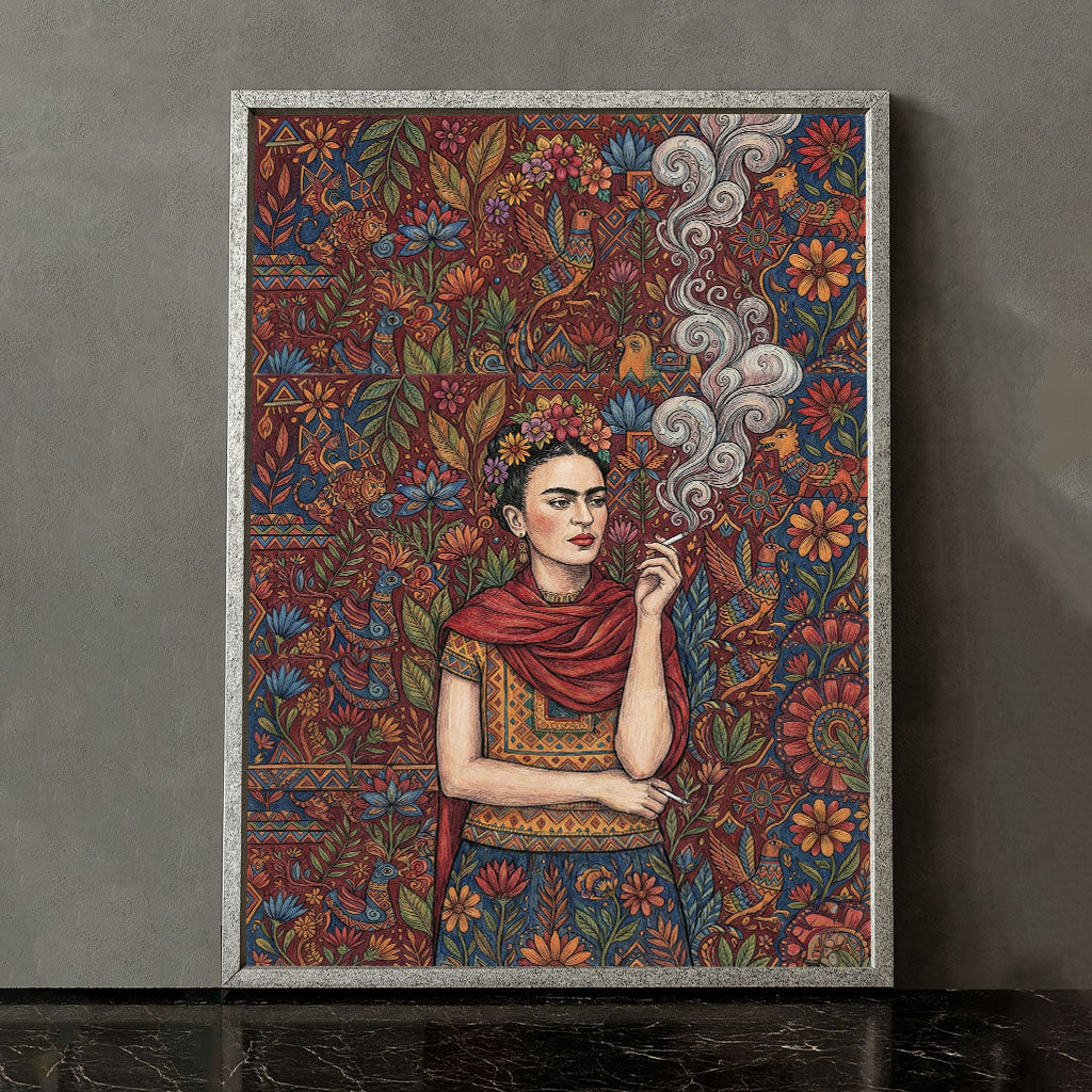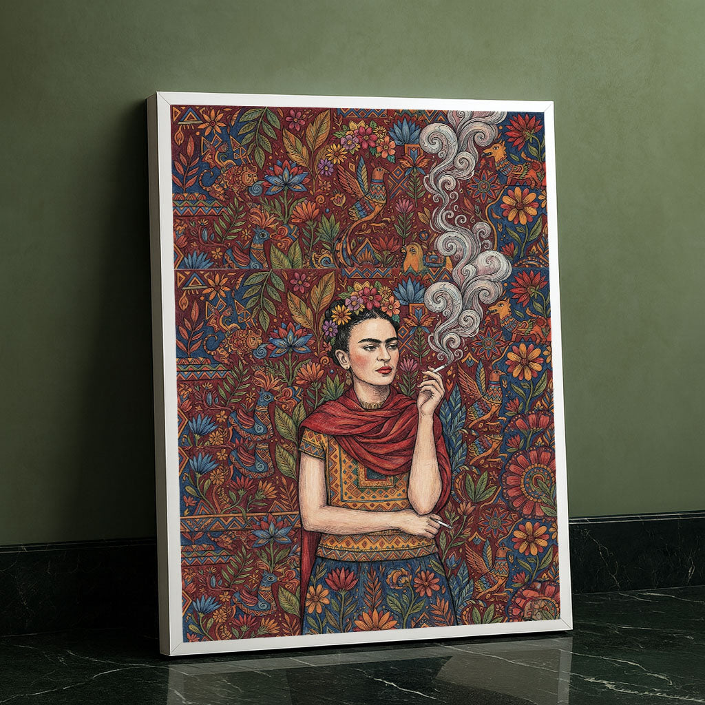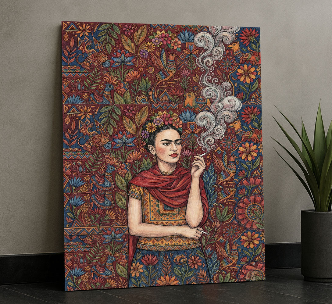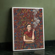 Enchanting Woman In Floral Pattern Smoking Canvas Wall Art