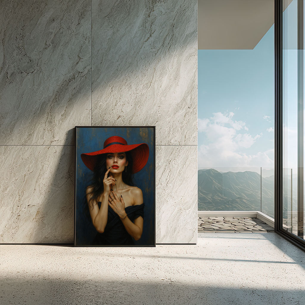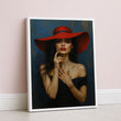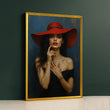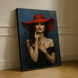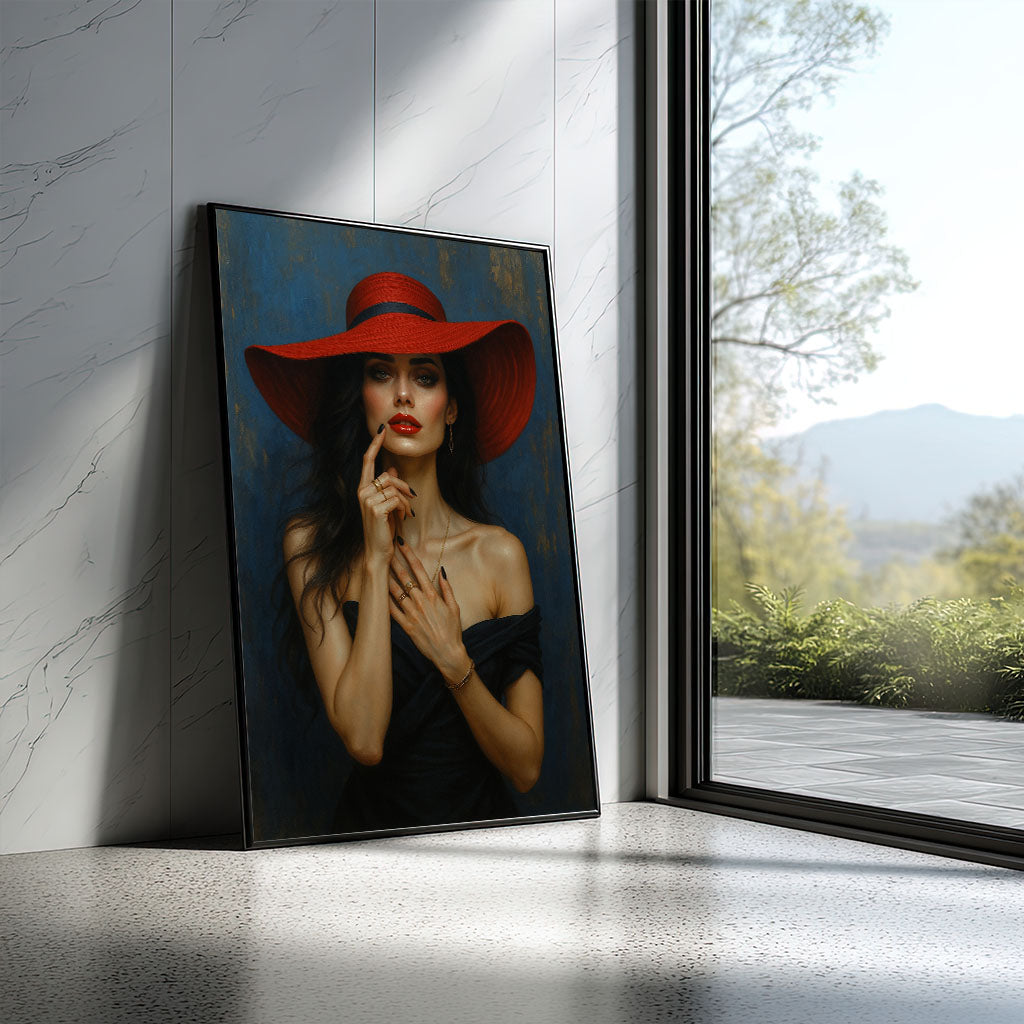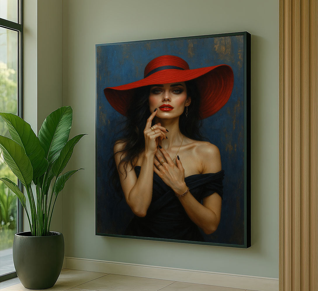 Enchanting Woman In Red Hat And Black Dress Canvas Wall Art