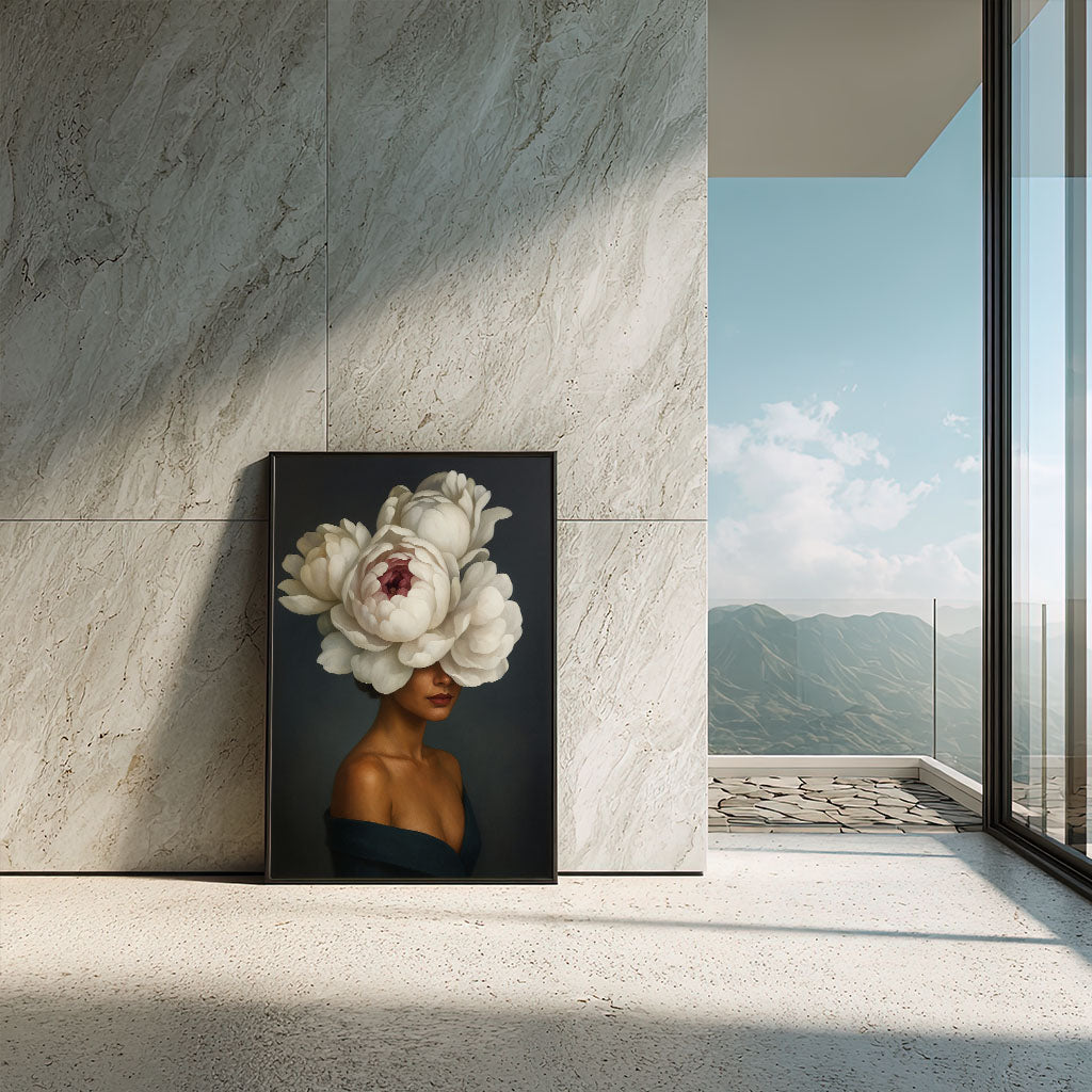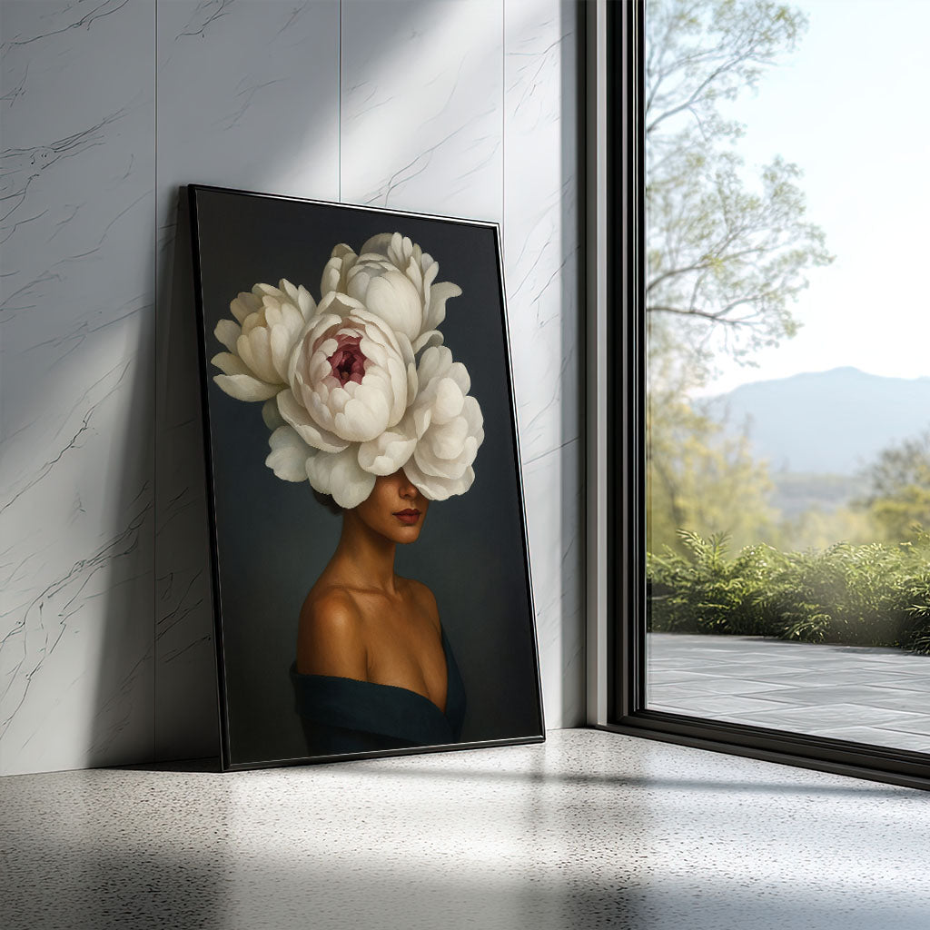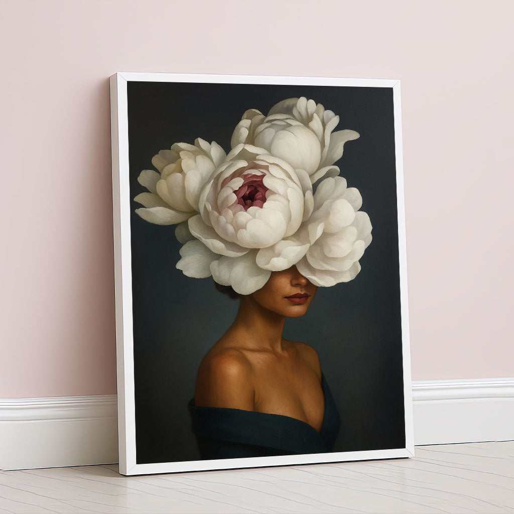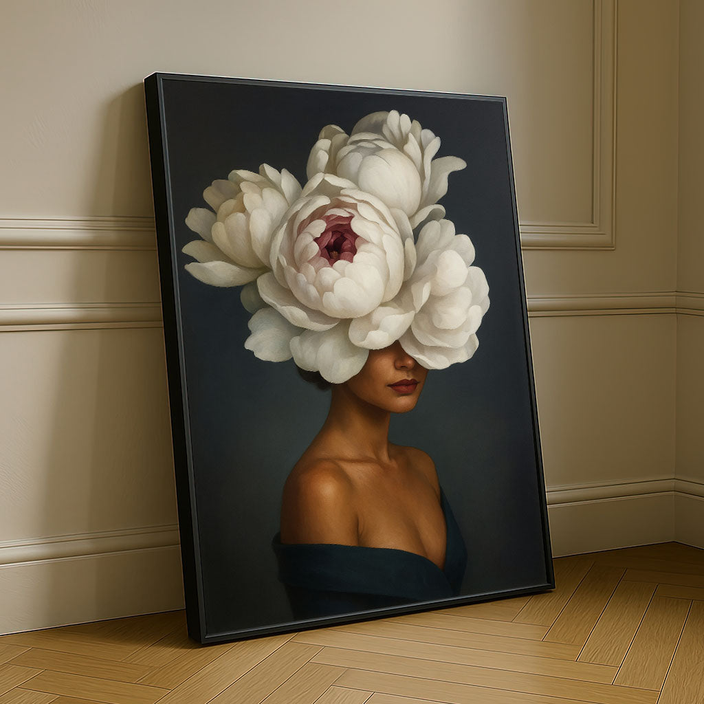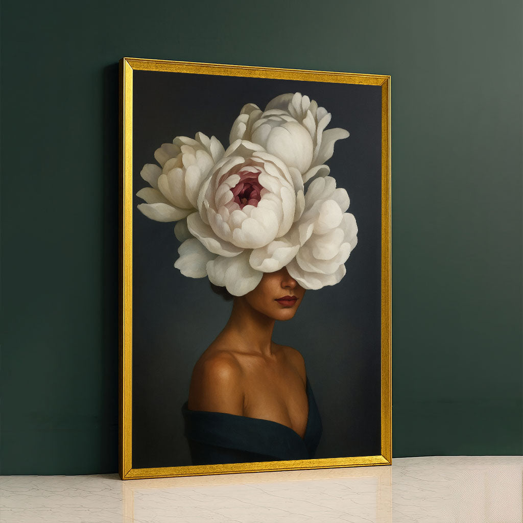 Enchanting Woman With Large White Peony Hat Canvas Wall Art