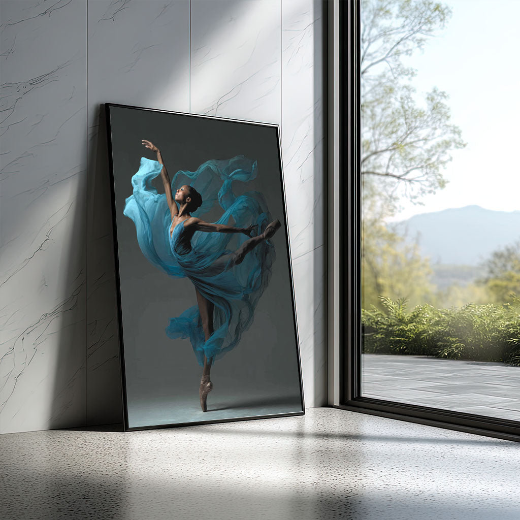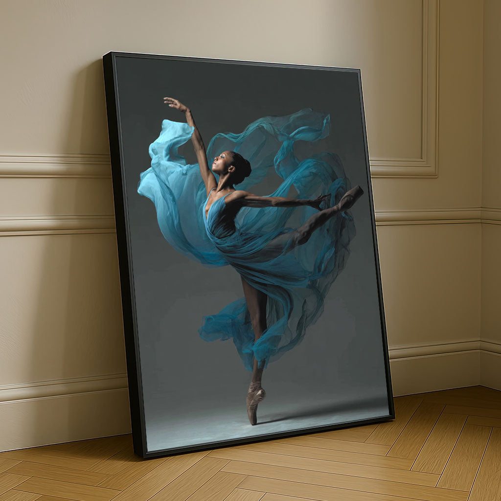 Graceful Ballerina In Flowing Blue Dress Canvas Wall Art