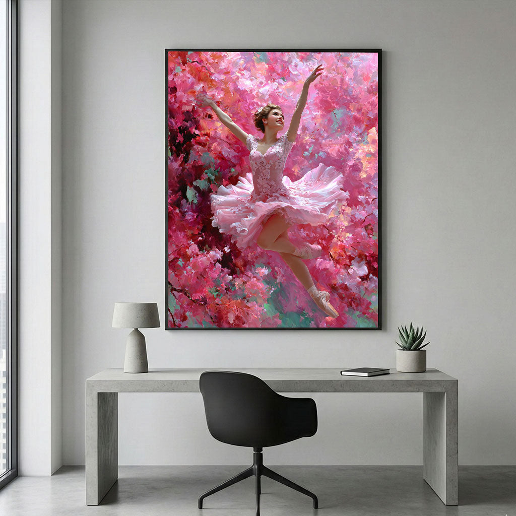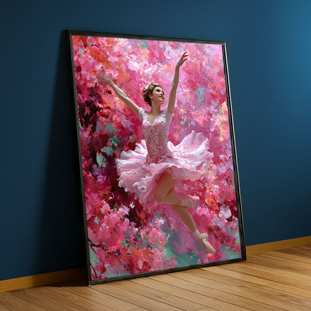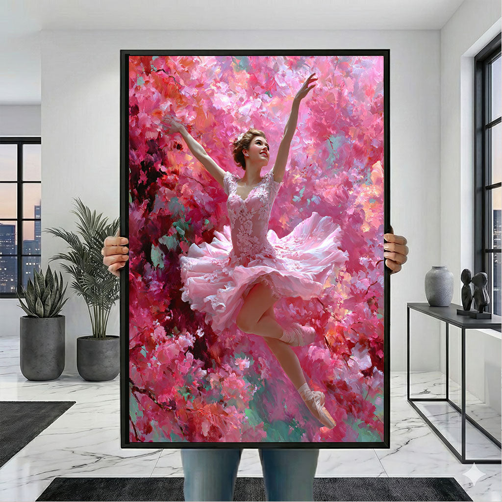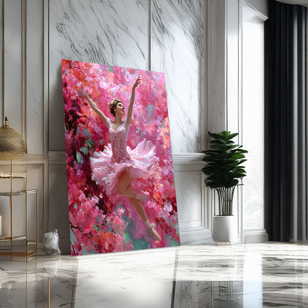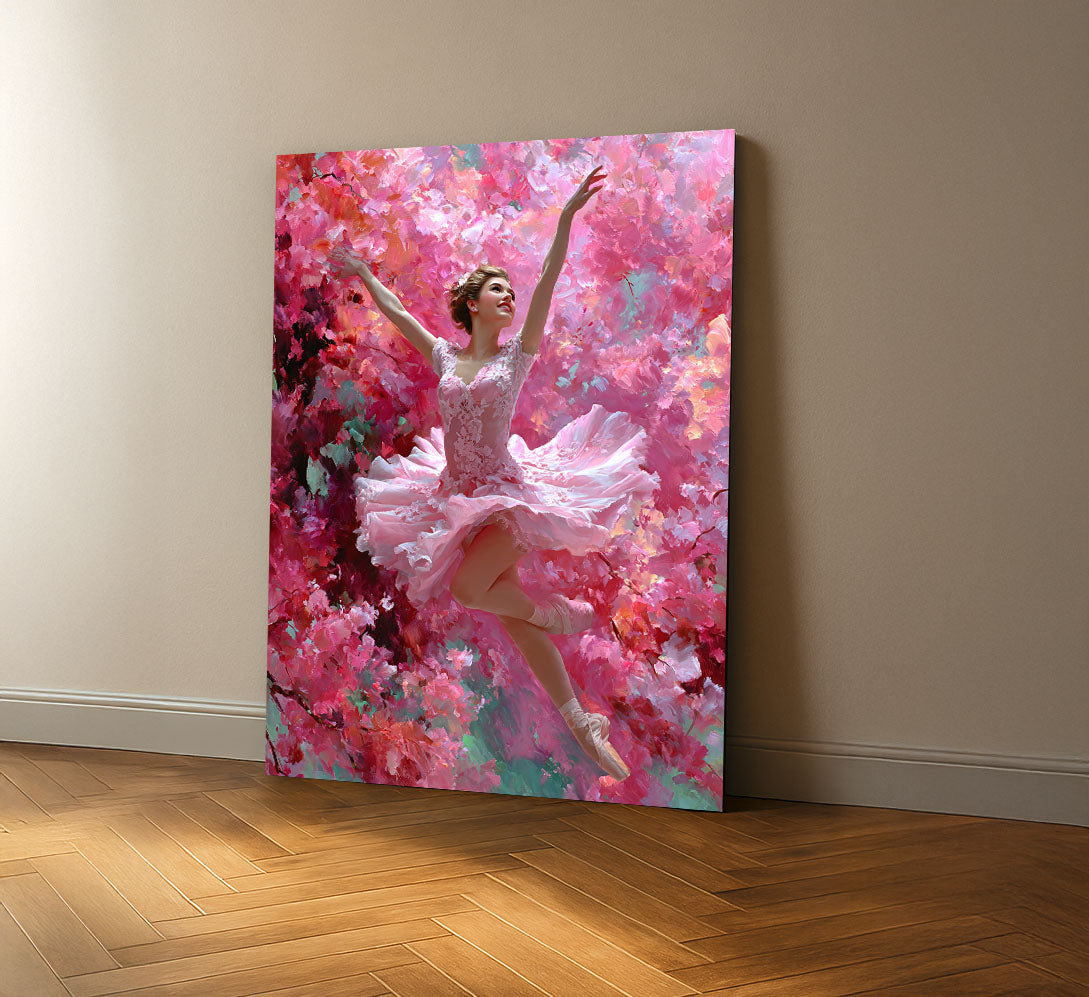 Graceful Ballerina In Pink Floral Dance Canvas Wall Art