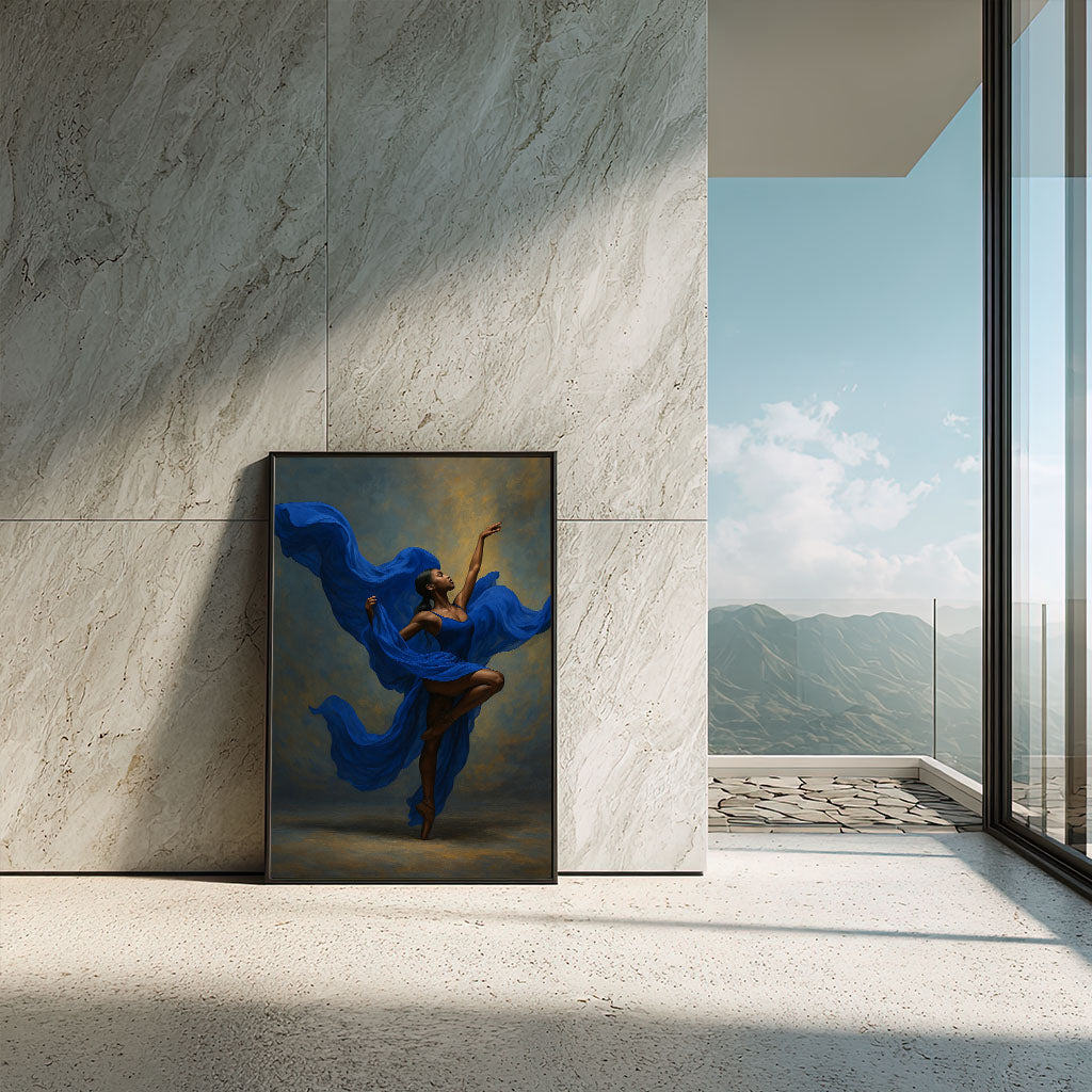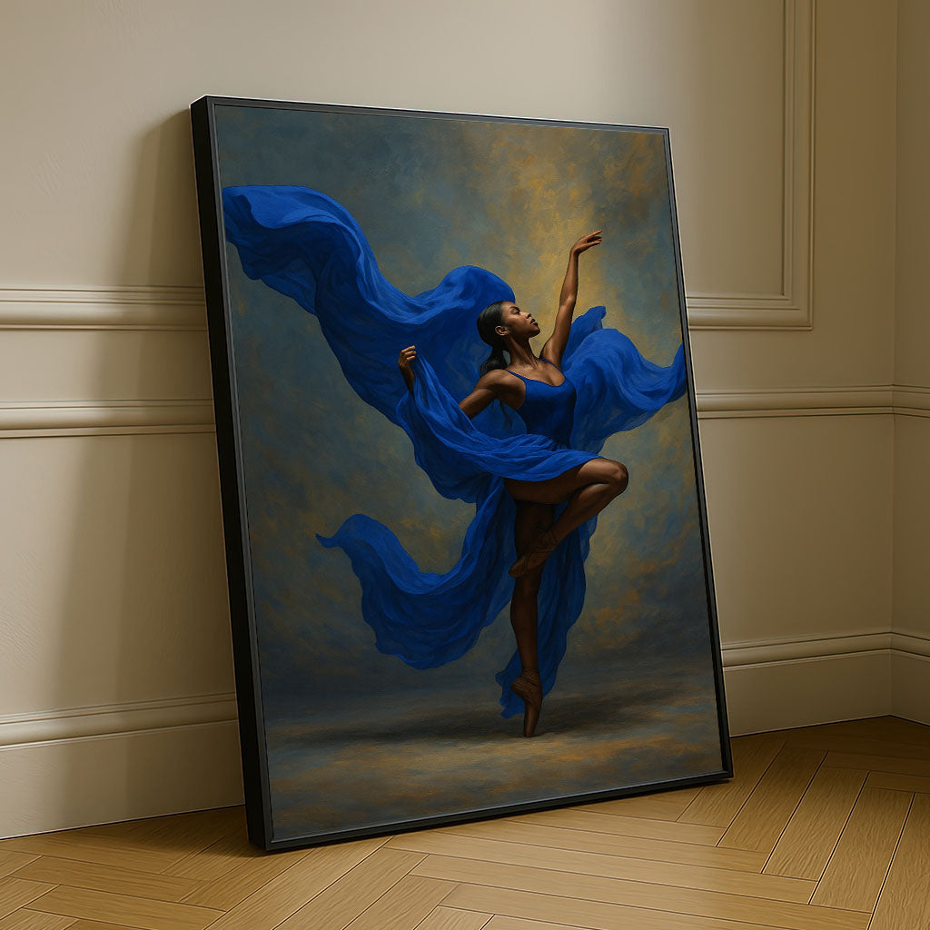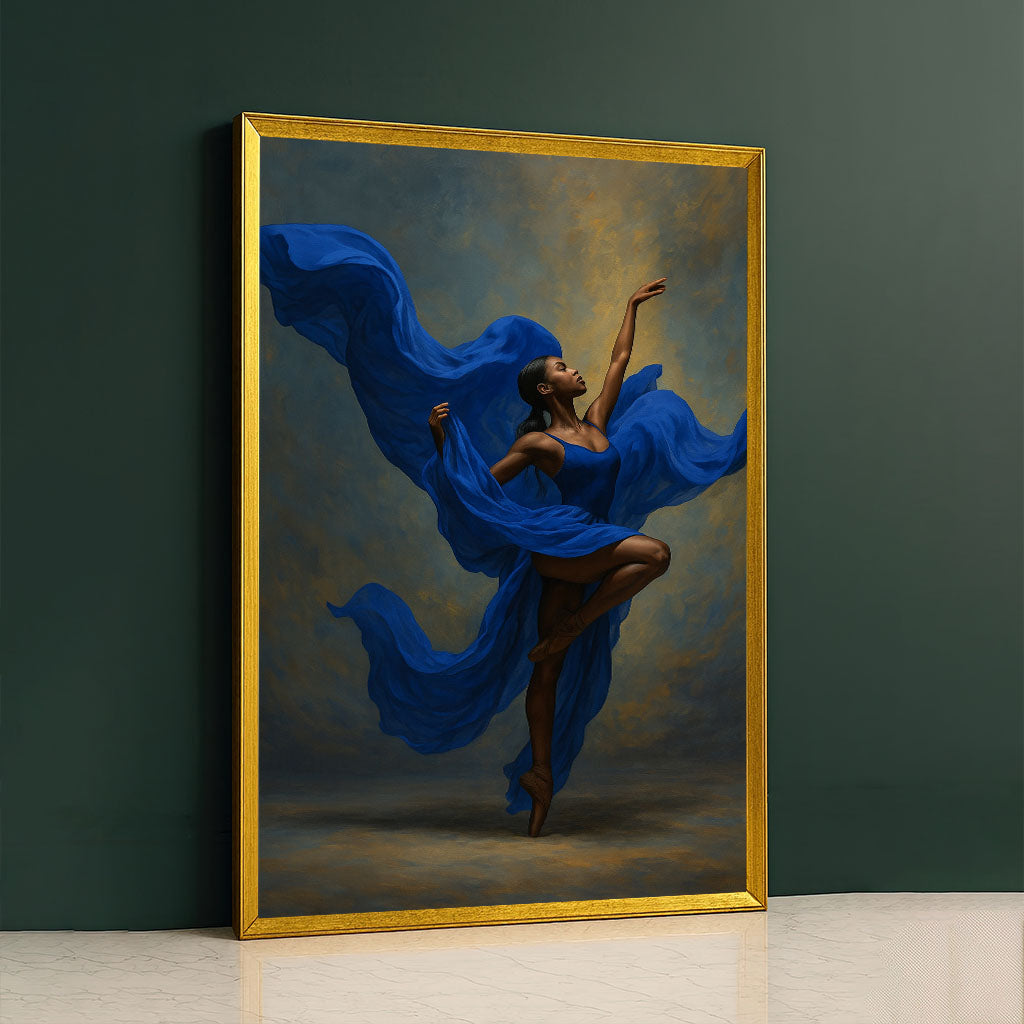 Graceful Black Woman In Flowing Blue Dress Canvas Wall Art