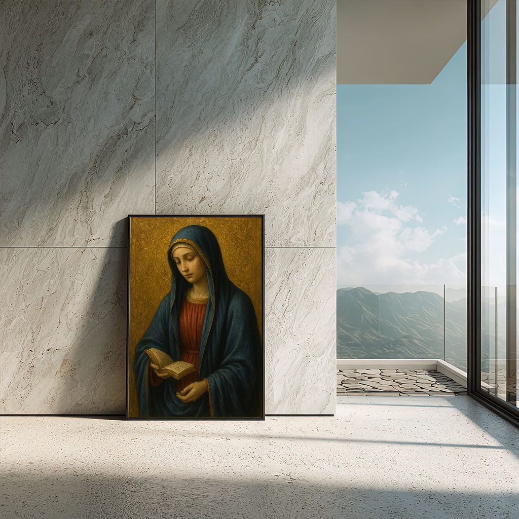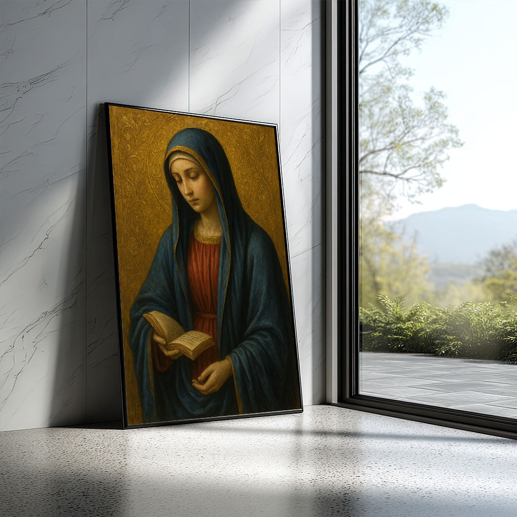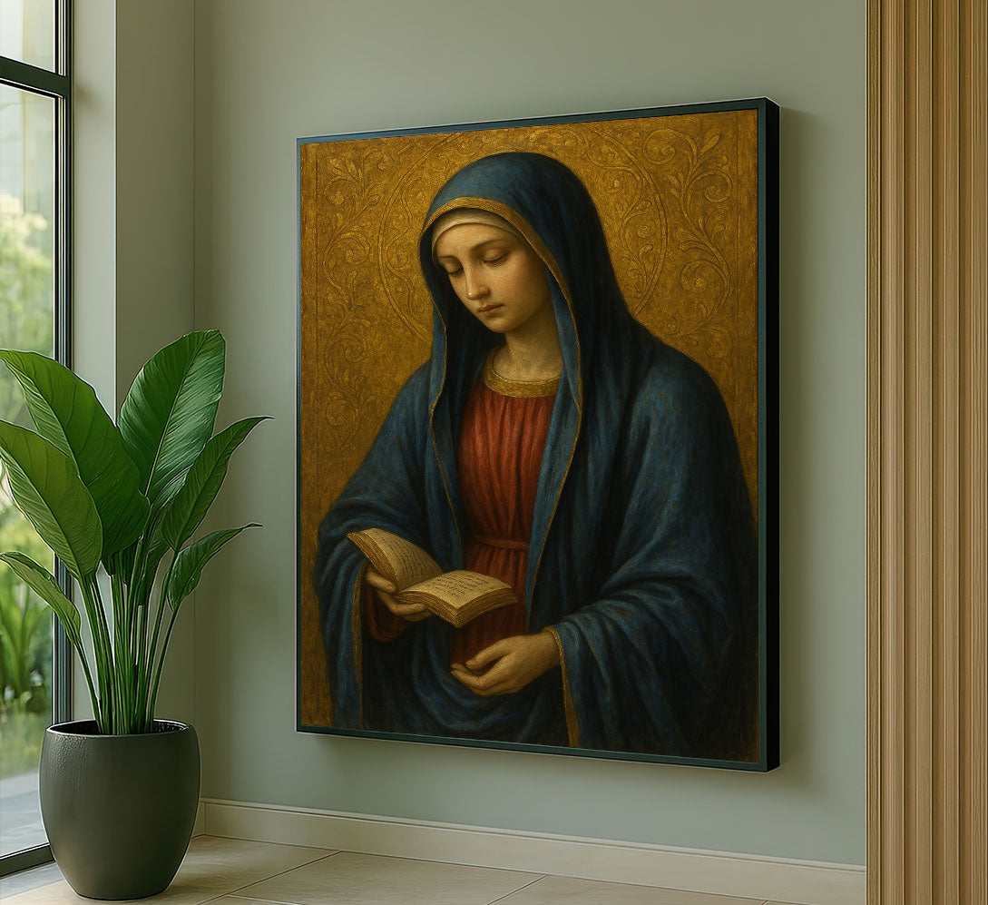 Graceful Woman Reading With Blue Veil Canvas Wall Art
