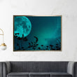 Green Moon at Night Natural Canvas Wall Art, Landscape Printing Wall Art,