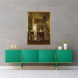 Large Oil Painting Of Vintage Interior With An Acoustic Guitar Canvas Wall Art / Antique Wall Art Print / Nordic Vintage House Canvas Art
