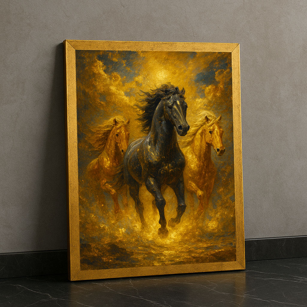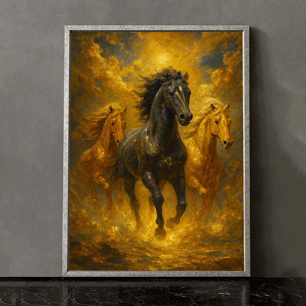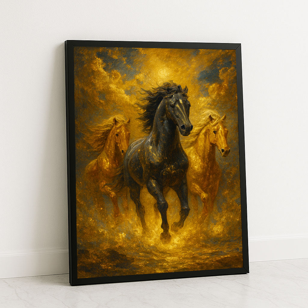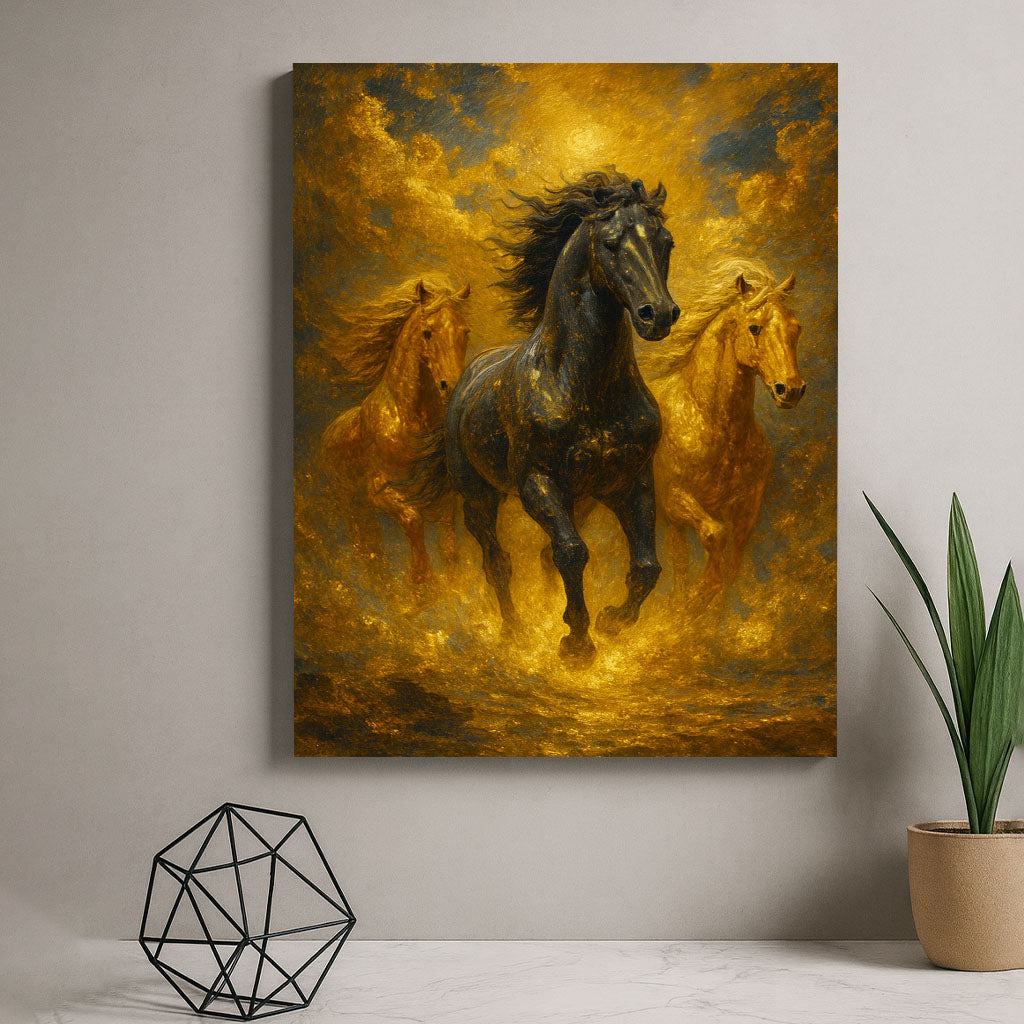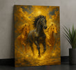 Majestic Black And Golden Horses Running Canvas Wall Art