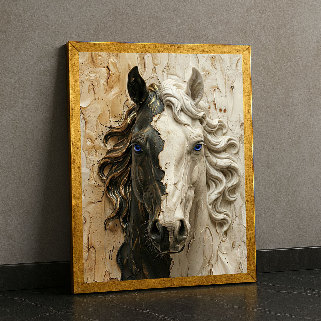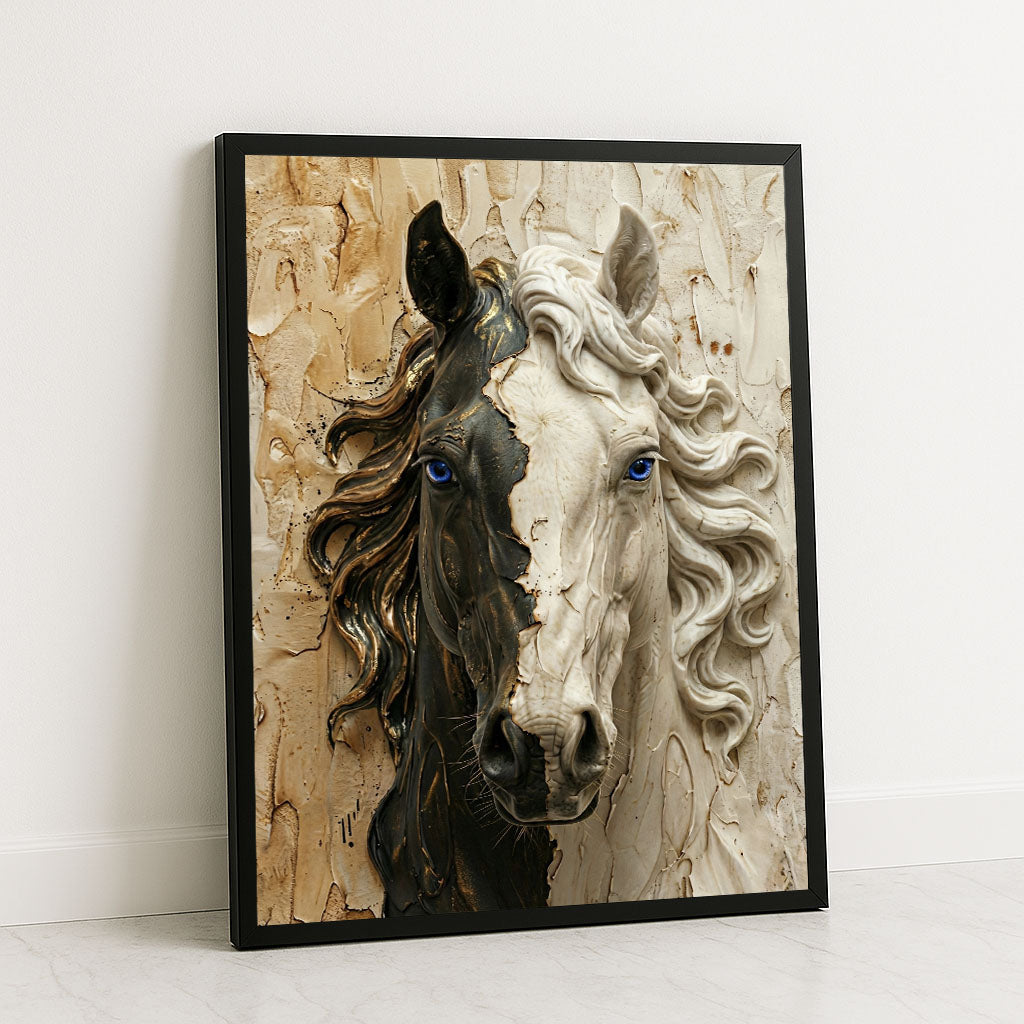 Majestic Black And White Horse Portrait Canvas Wall Art