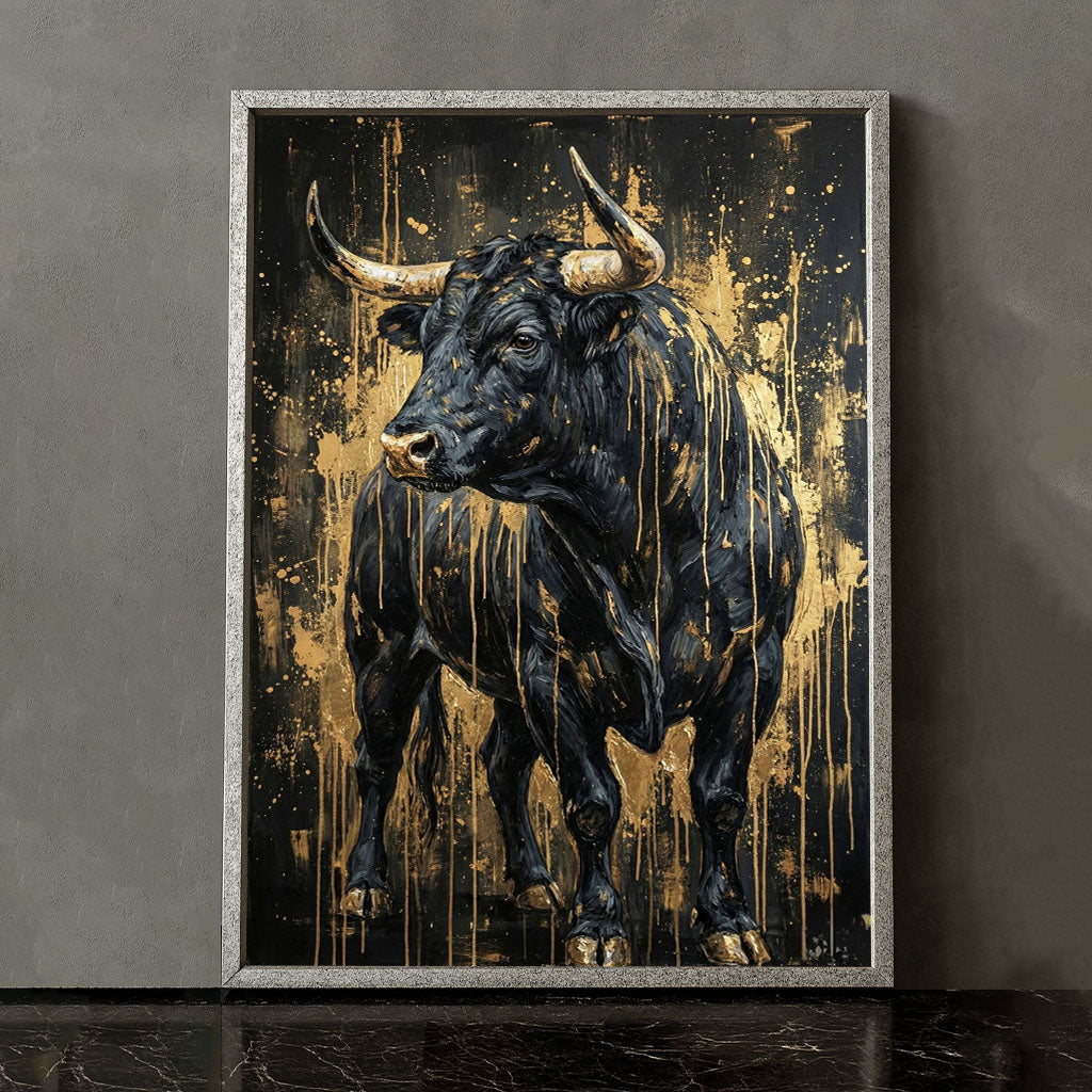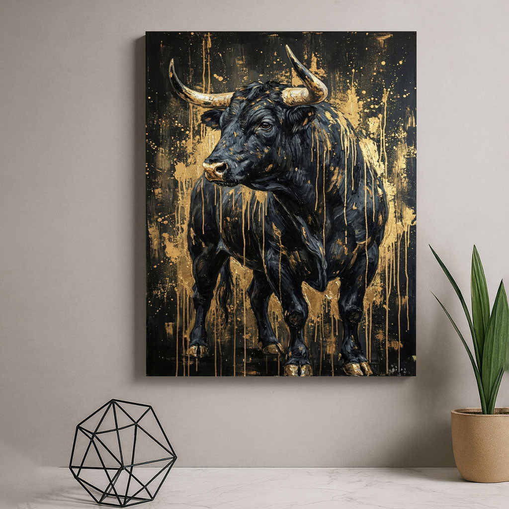 Majestic Black Bull With Gold Accents Canvas Wall Art