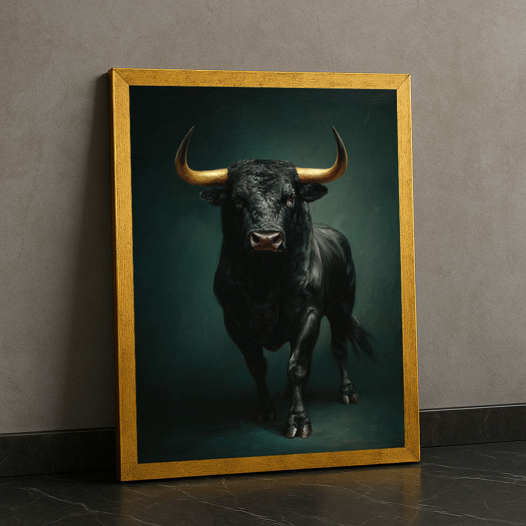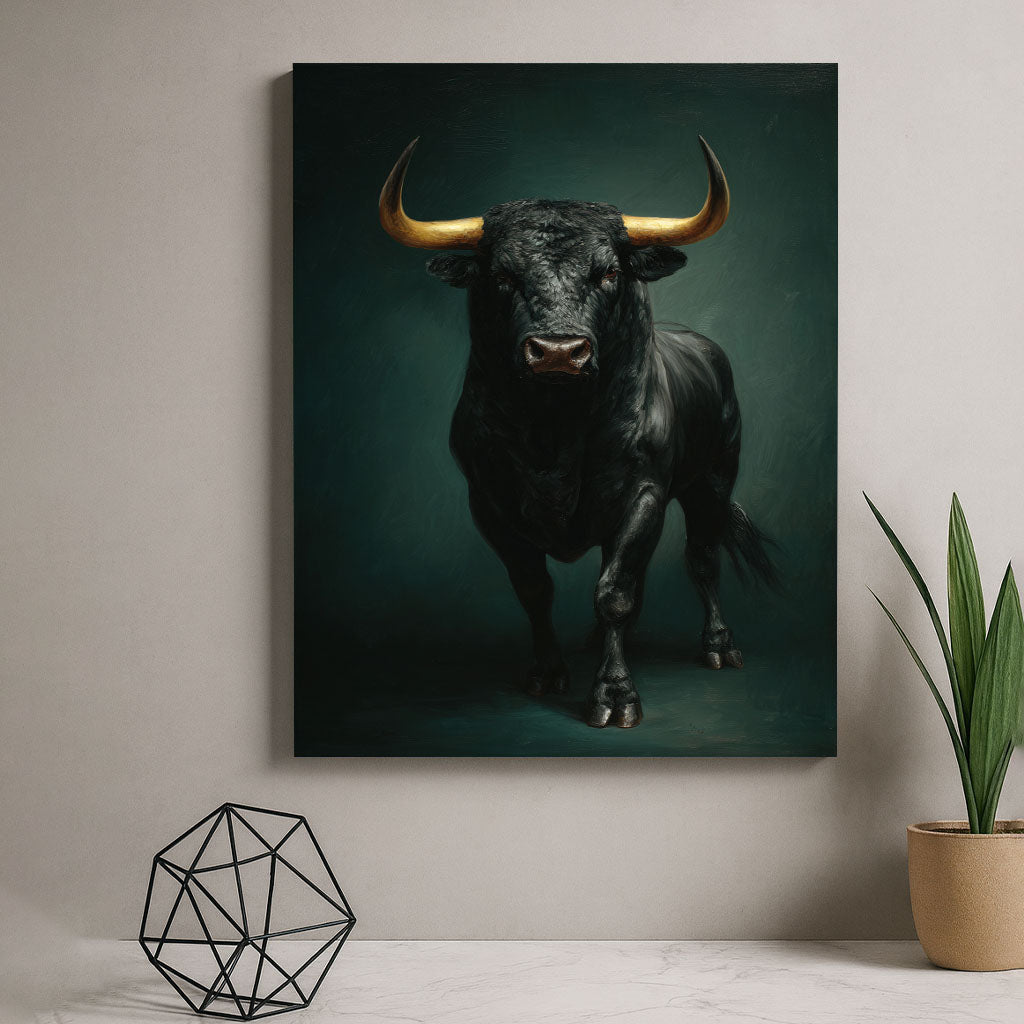Majestic Black Bull With Golden Horns Canvas Wall Art