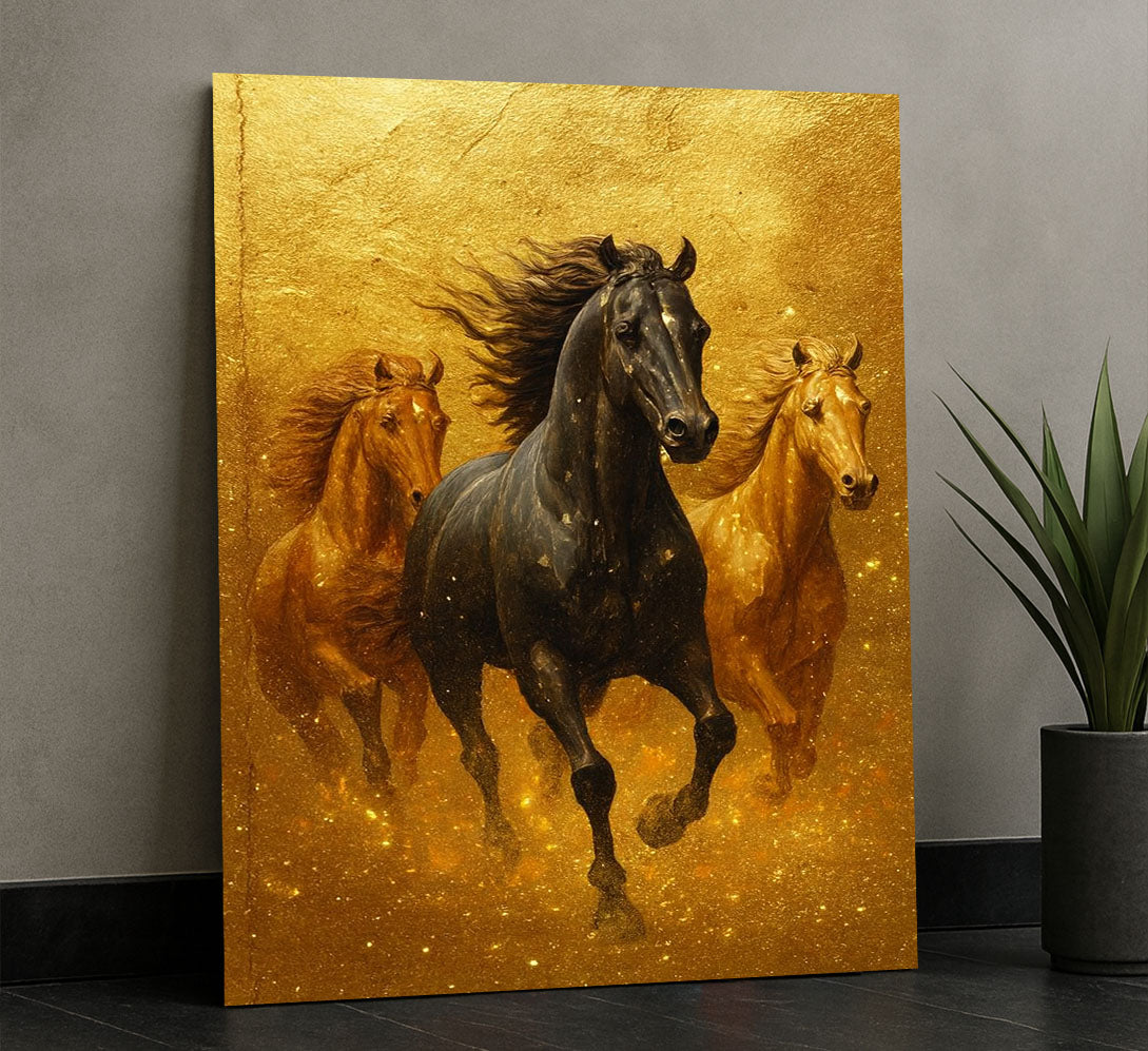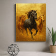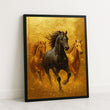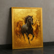 Majestic Black Horses Galloping In Gold Canvas Wall Art