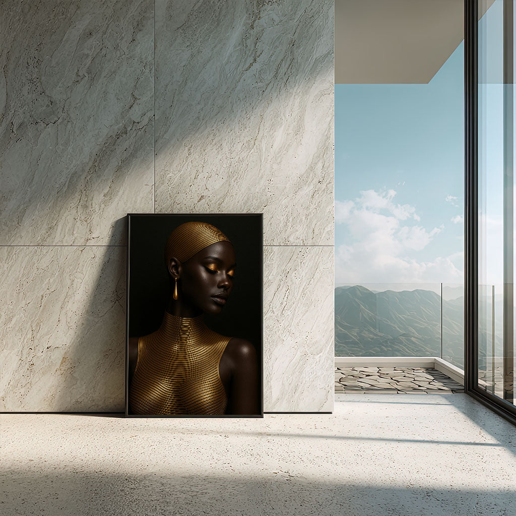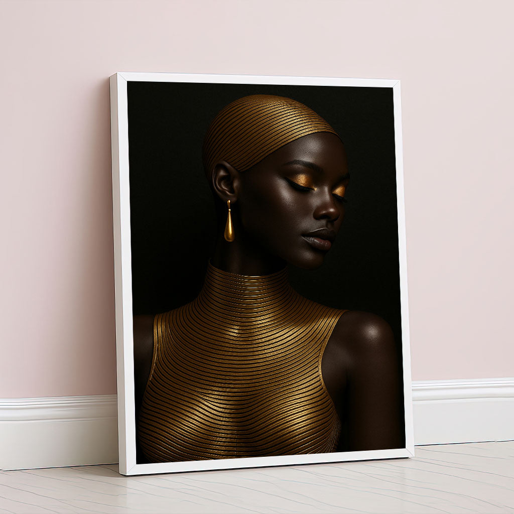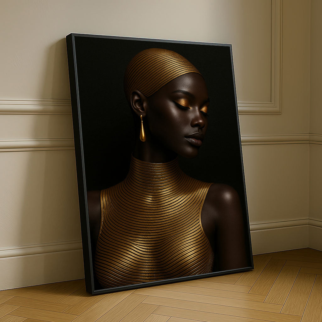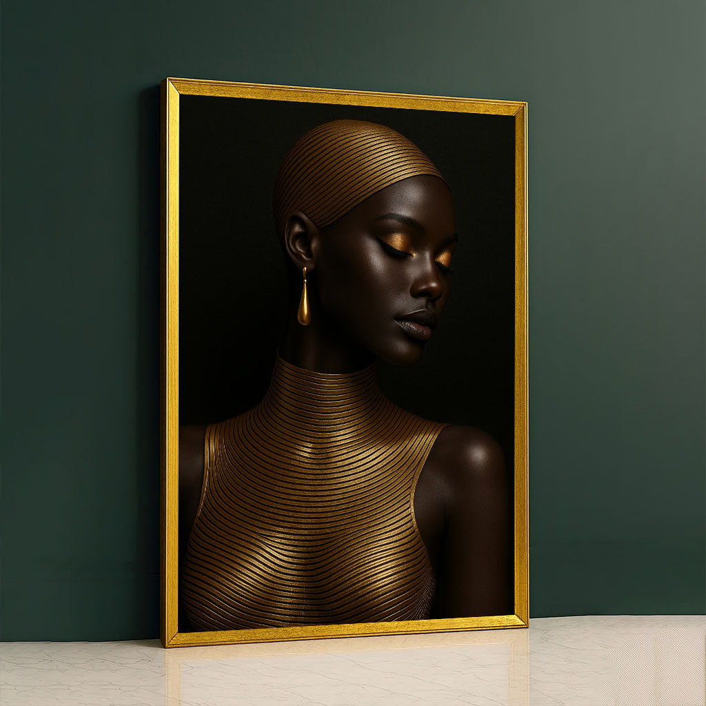 Majestic Black Woman In Gold Accents Canvas Wall Art