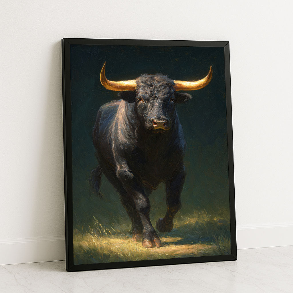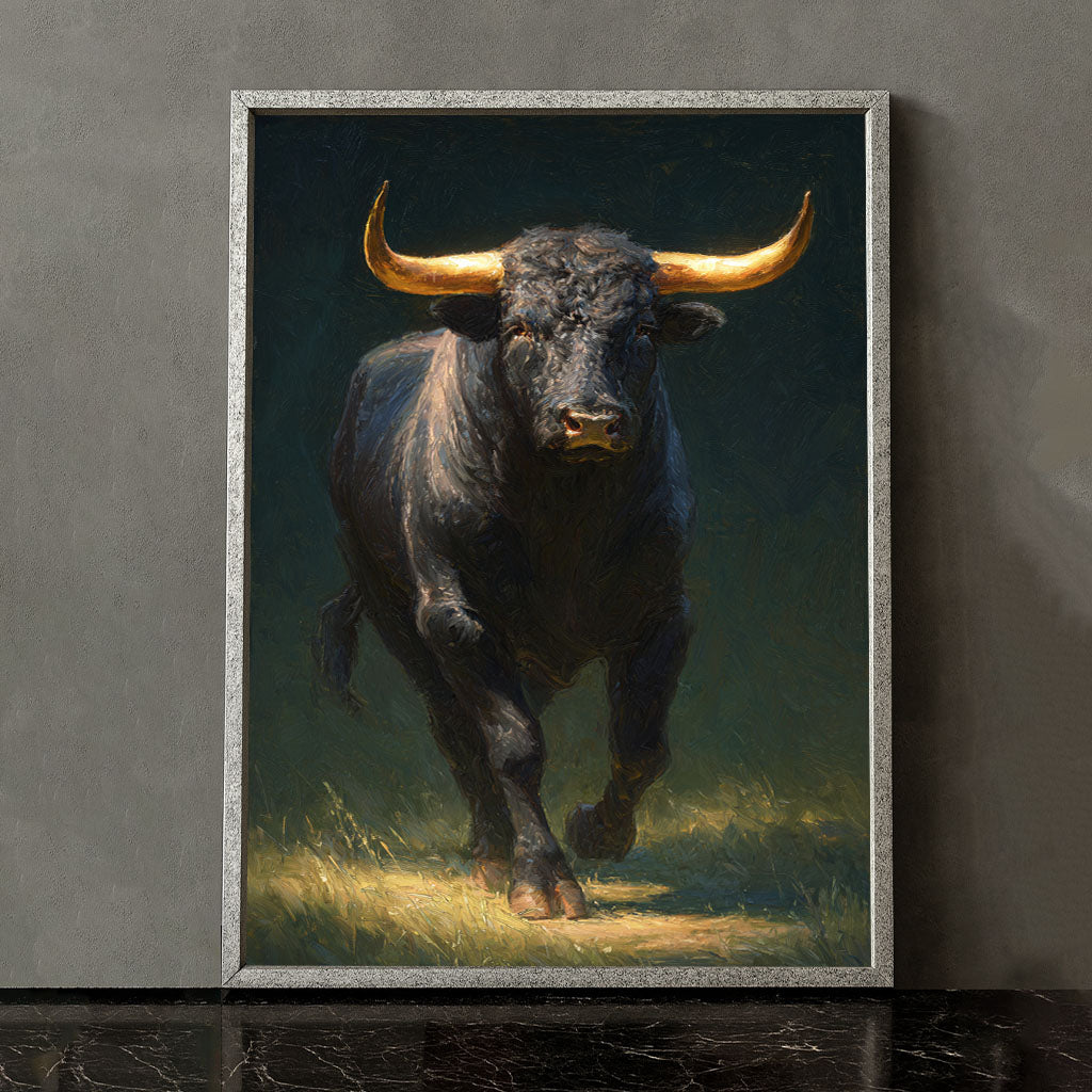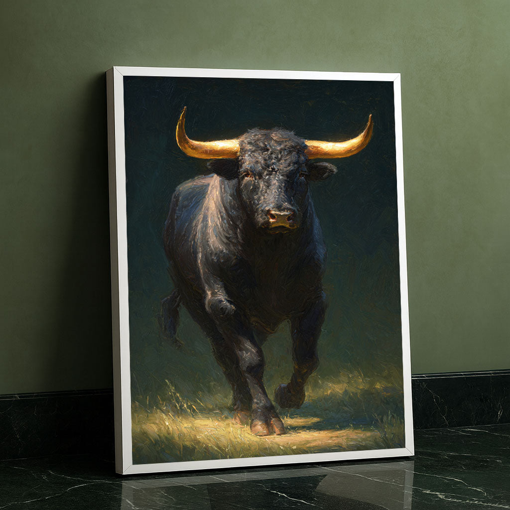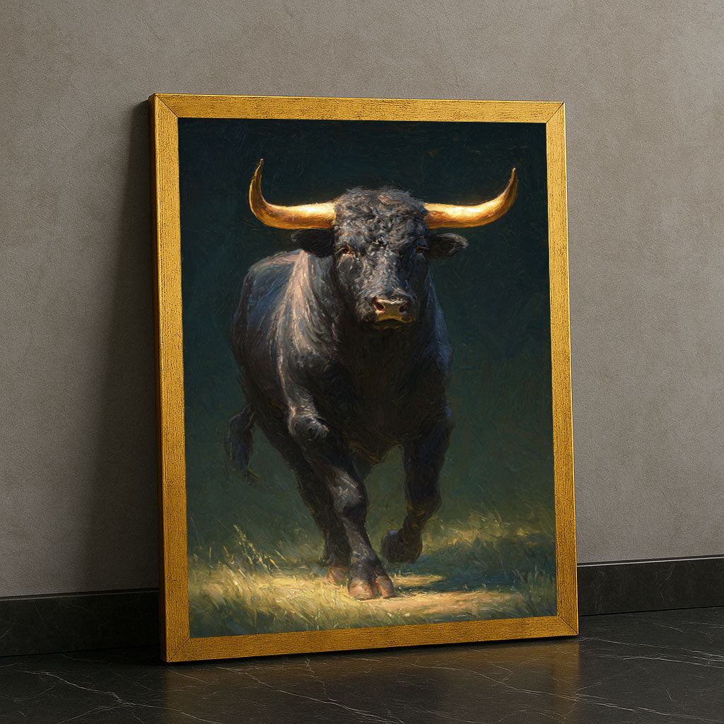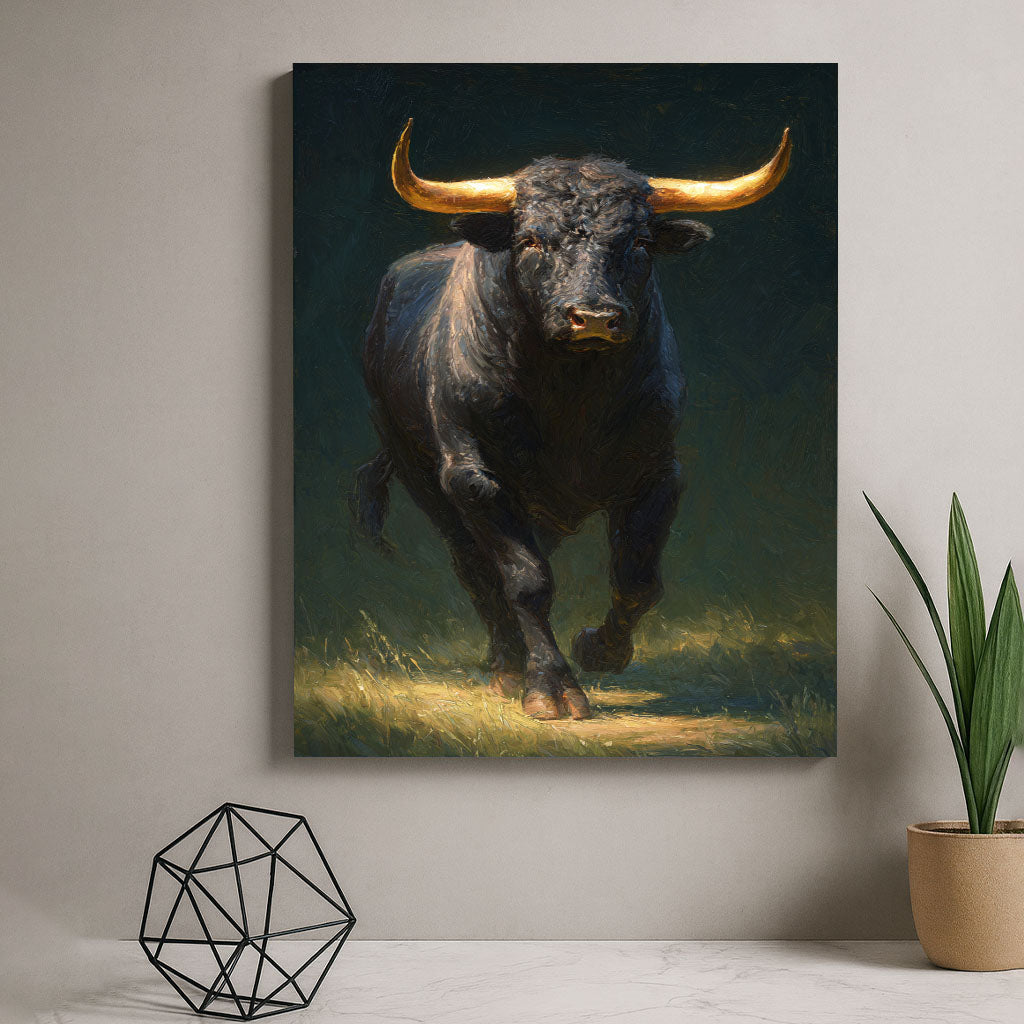 Majestic Charging Bull With Golden Horns Canvas Wall Art