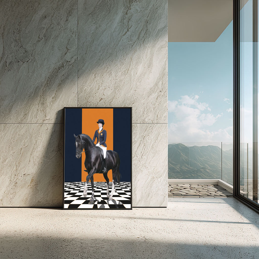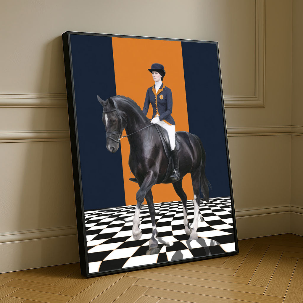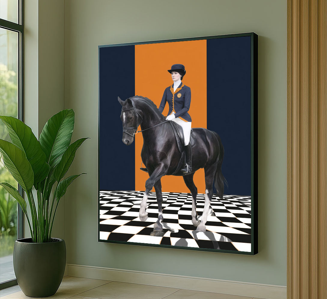 Majestic Equestrian Rider On Black Horse Canvas Wall Art