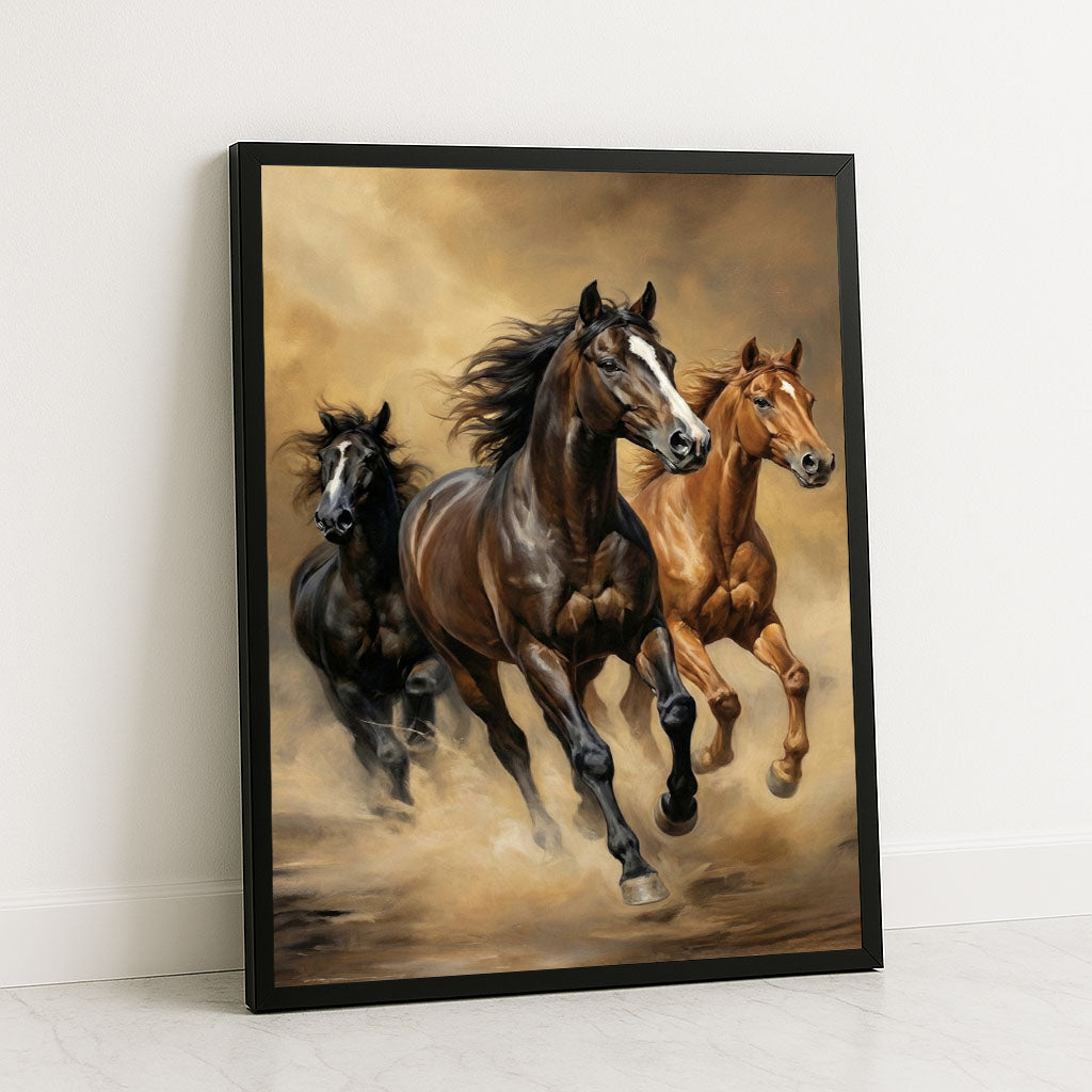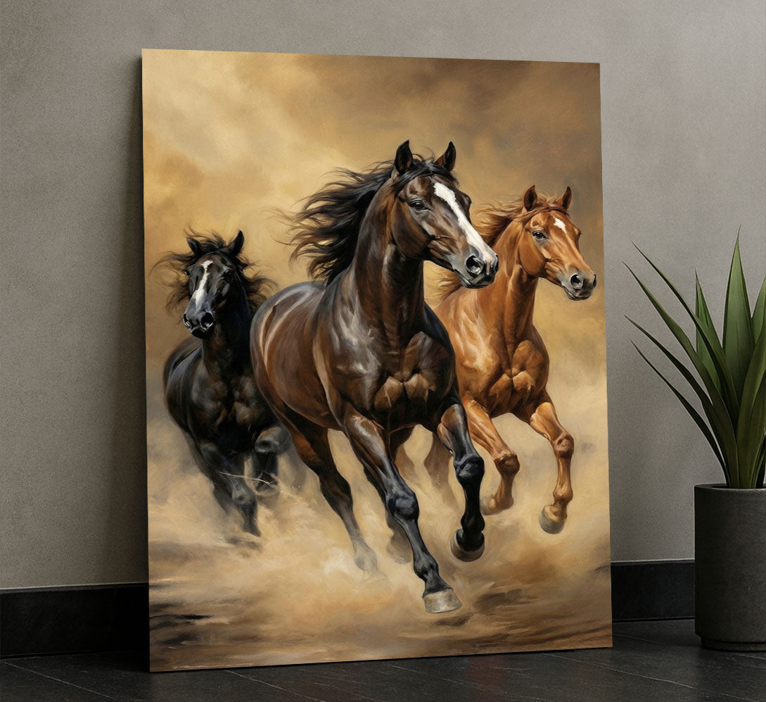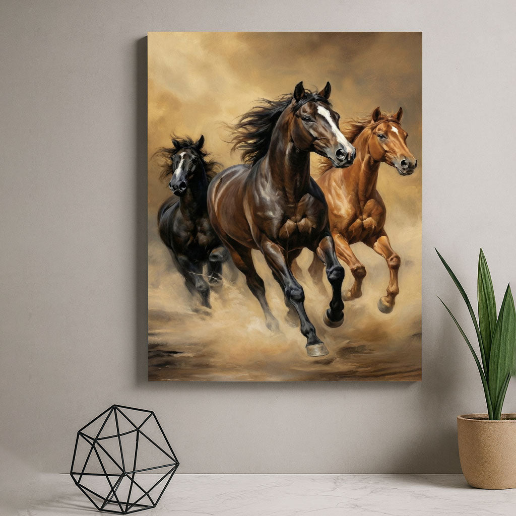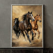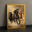 Majestic Galloping Horses In Dusty Landscape Canvas Wall Art