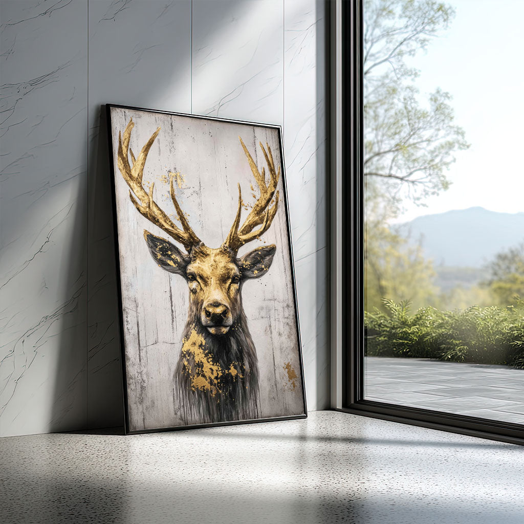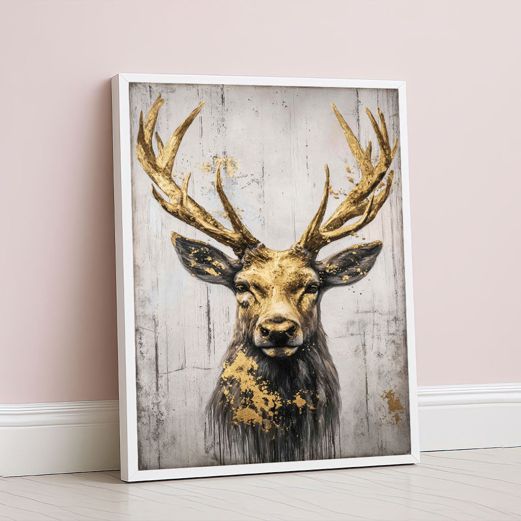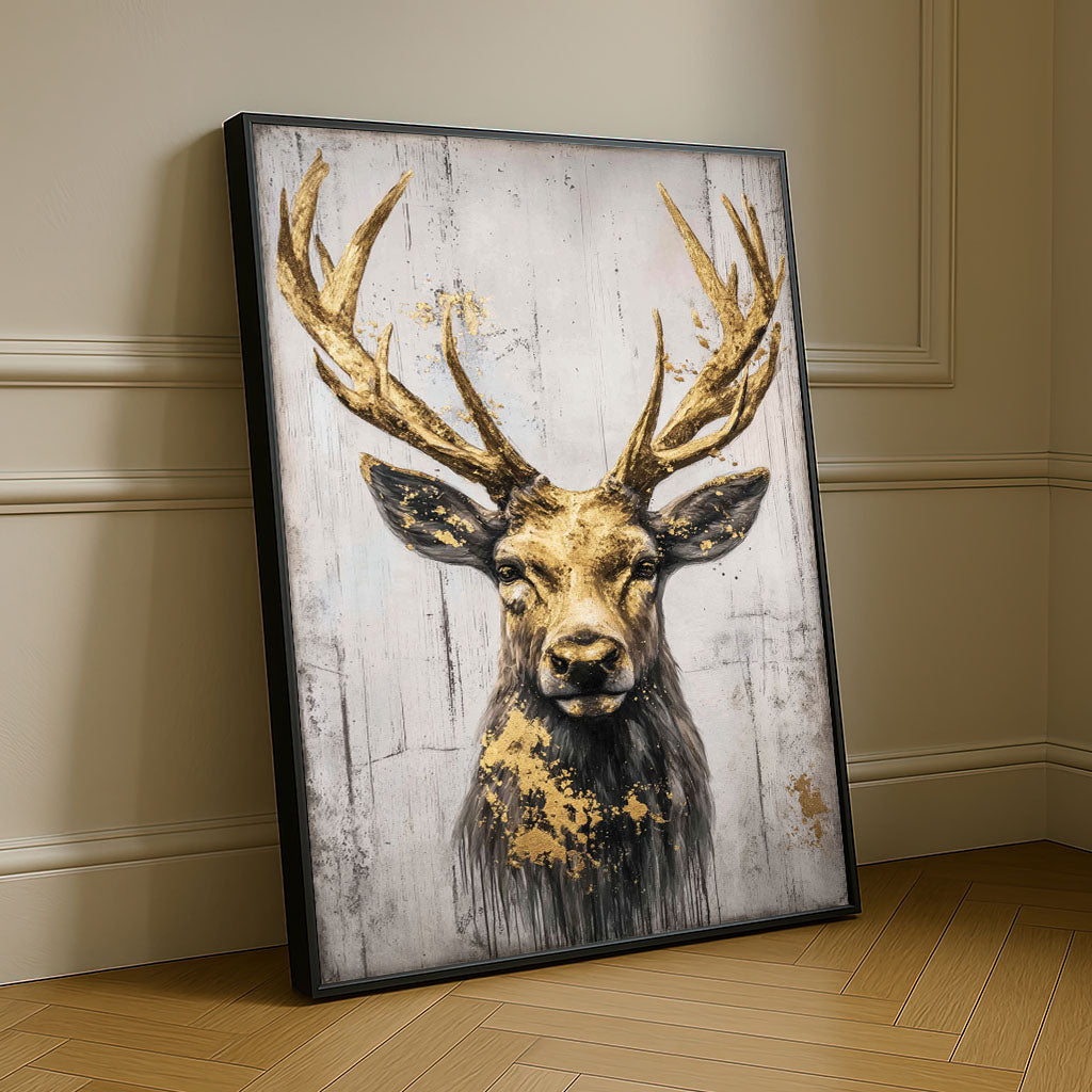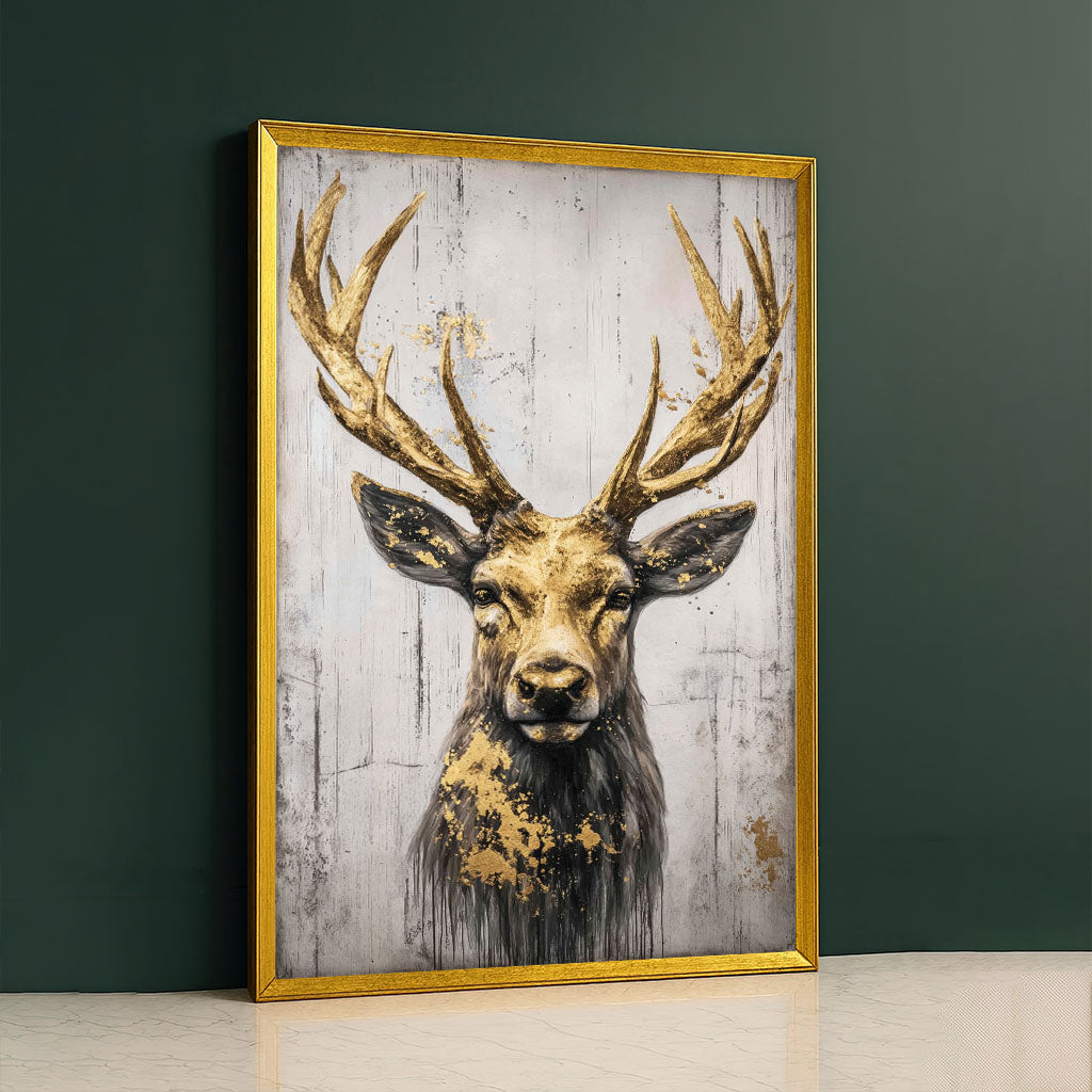 Majestic Golden Deer With Antlers Canvas Wall Art
