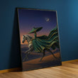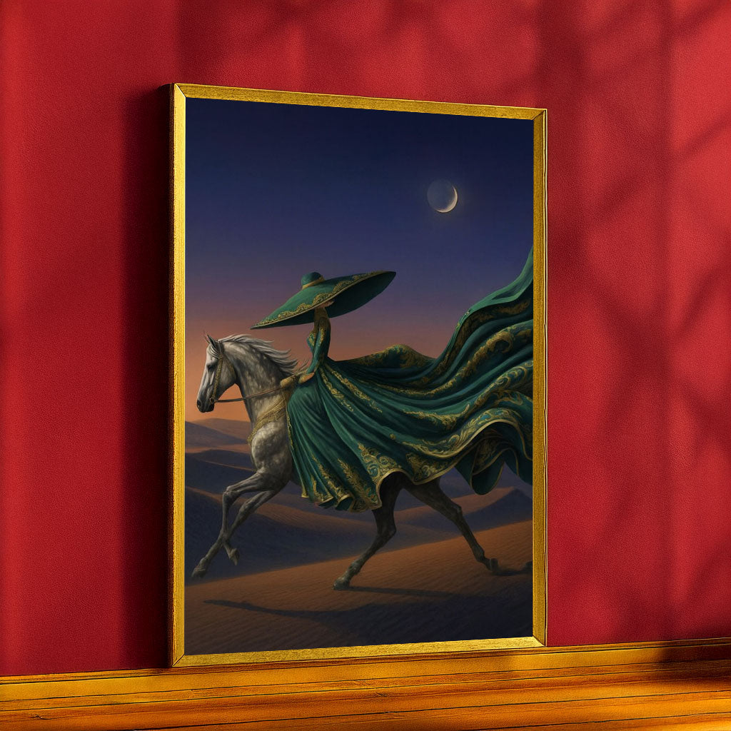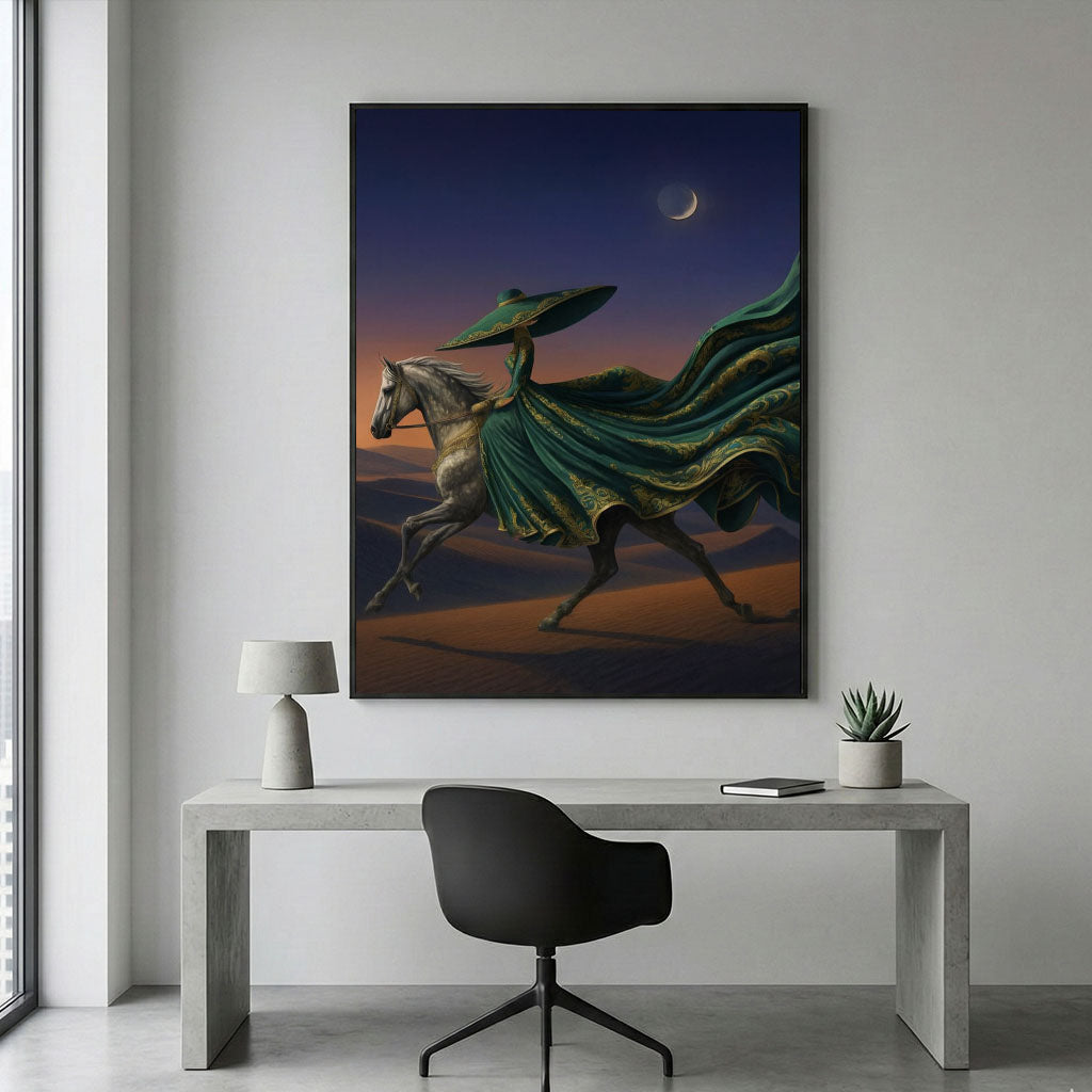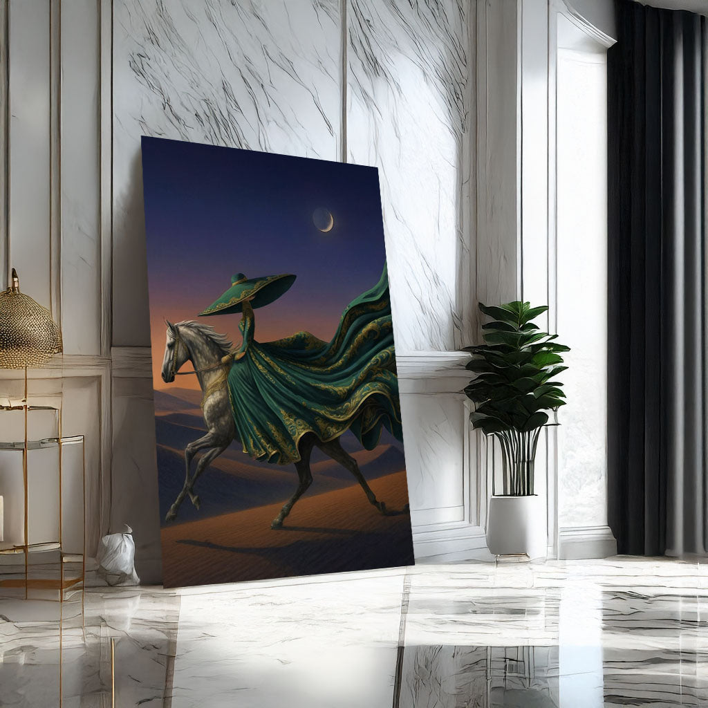 Majestic Woman In Flowing Green Gown On Horse Canvas Wall Art