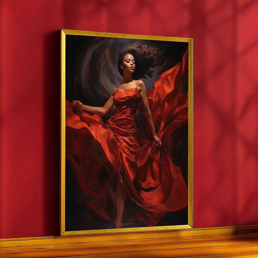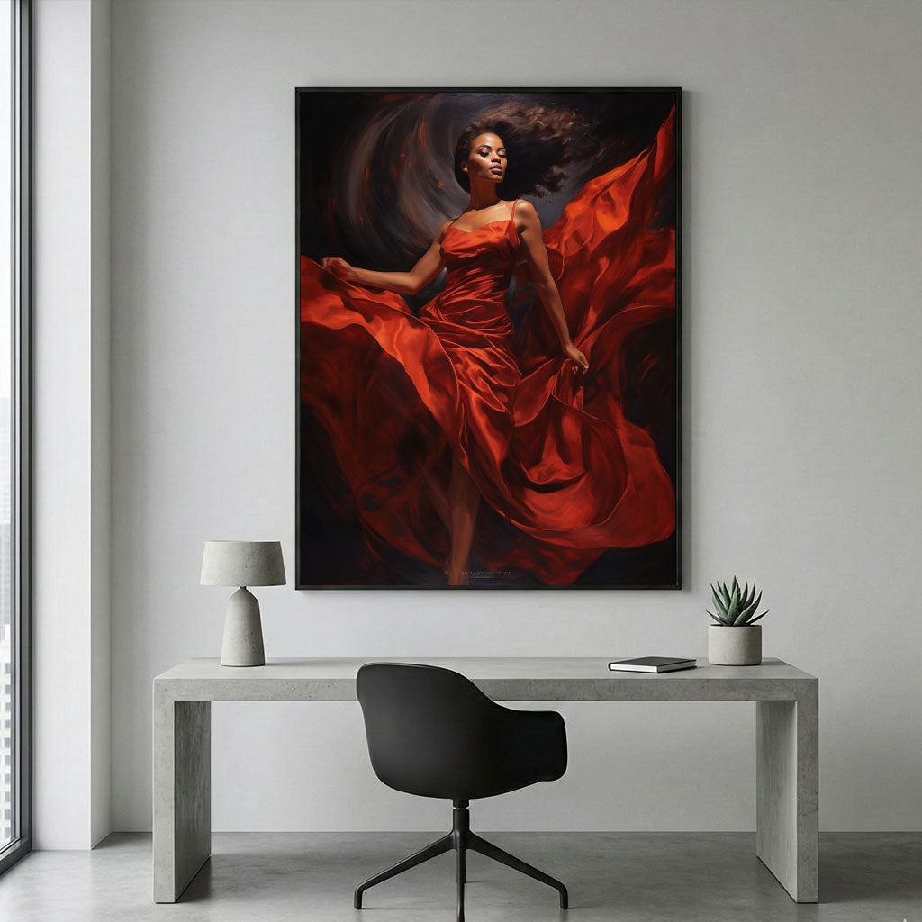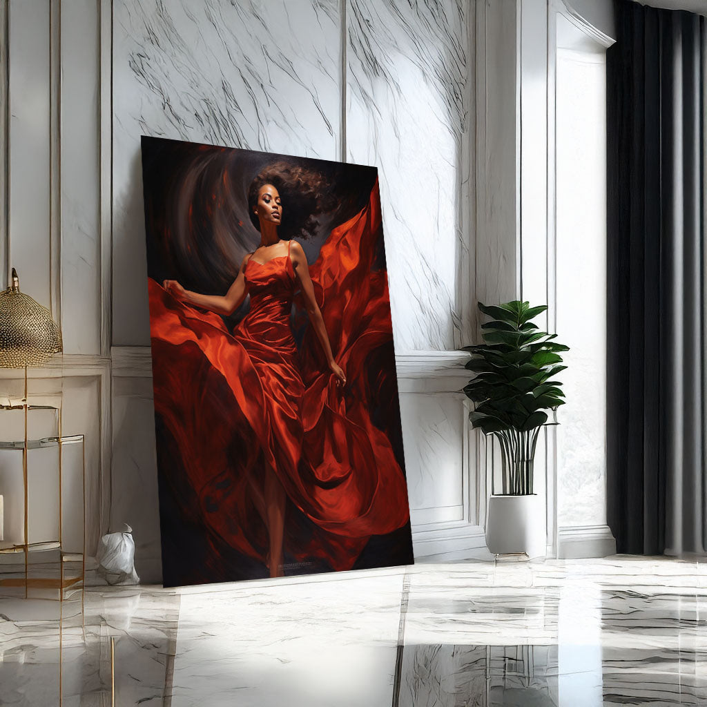 Majestic Woman In Flowing Red Dress Canvas Wall Art