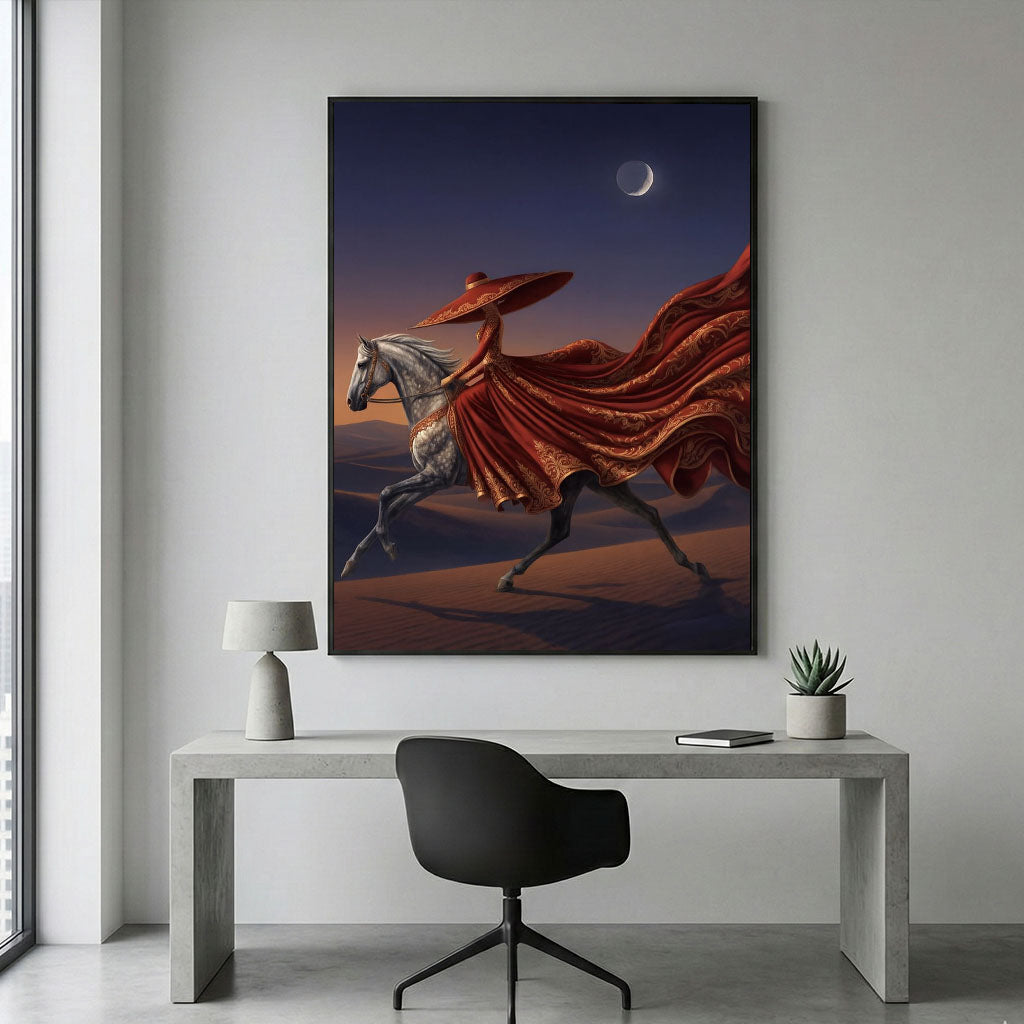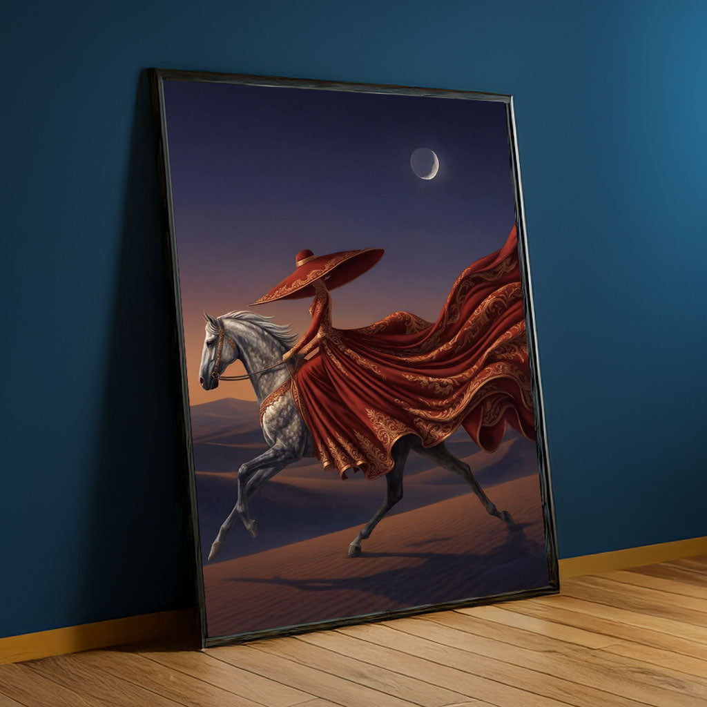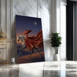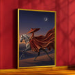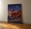 Majestic Woman In Flowing Red Dress Riding Horse Canvas Wall Art