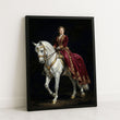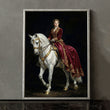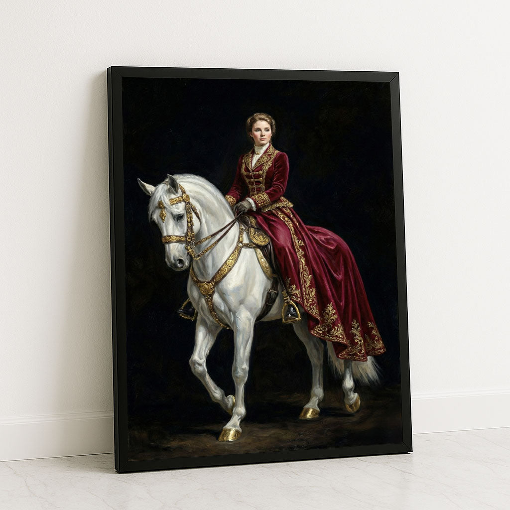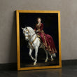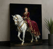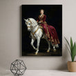 Majestic Woman In Regal Red Dress On White Horse Canvas Wall Art