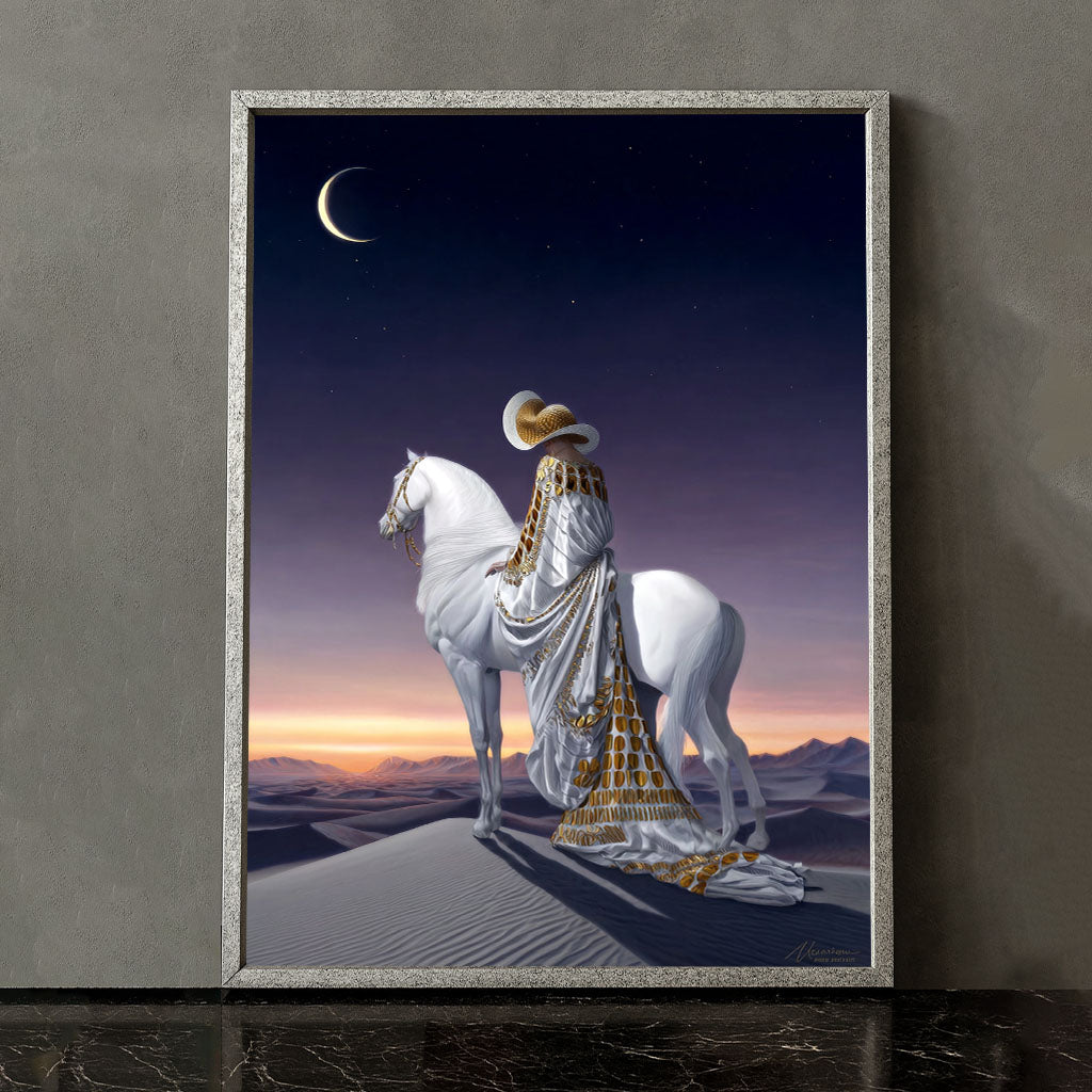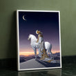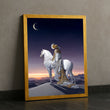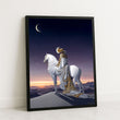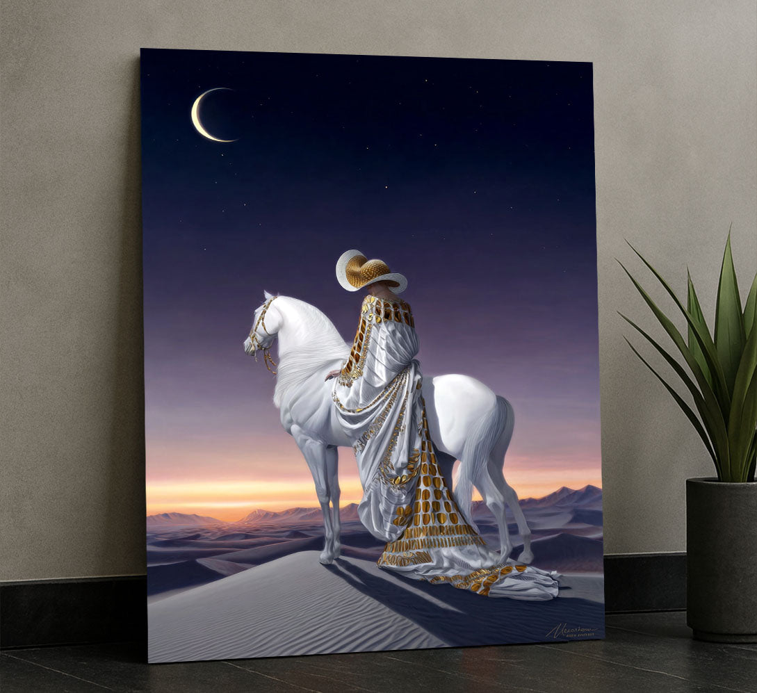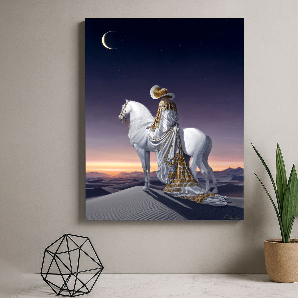 Majestic Woman On White Horse Under Crescent Moon Canvas Wall Art