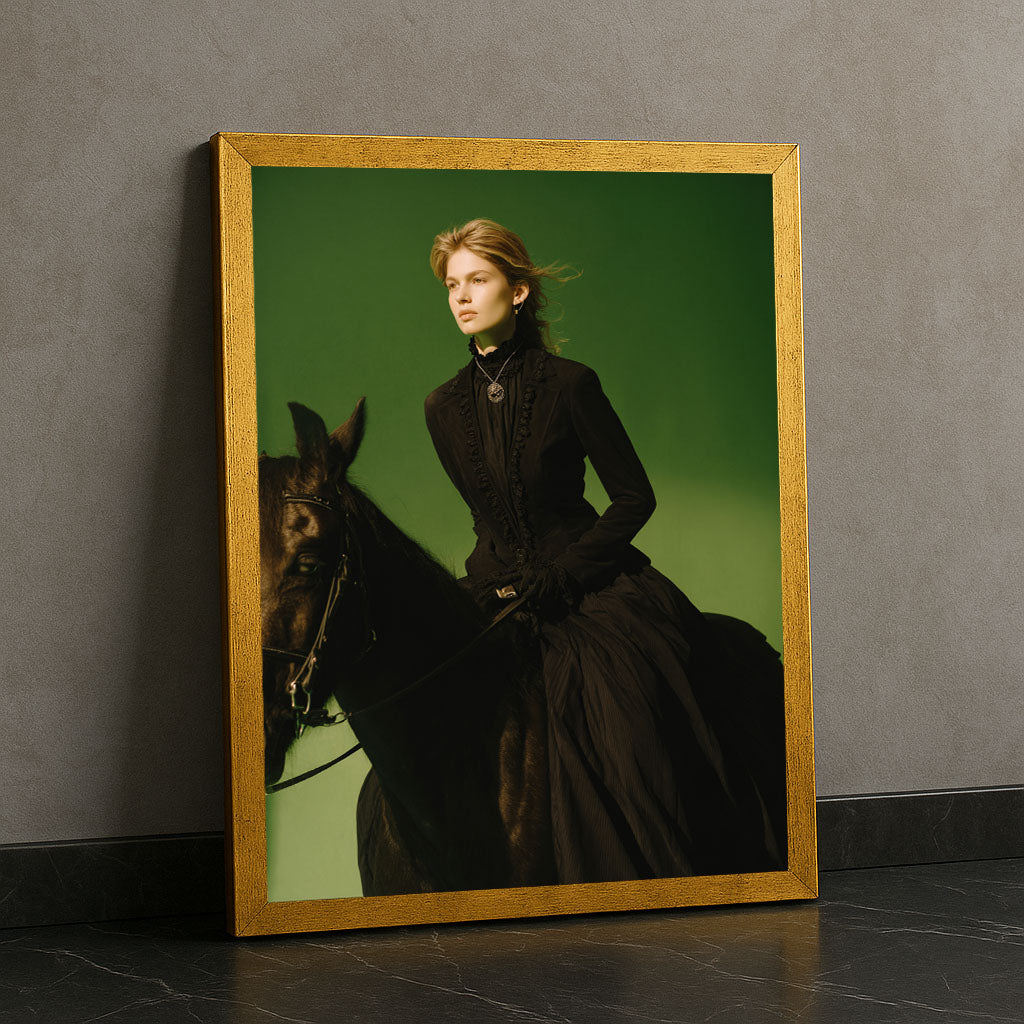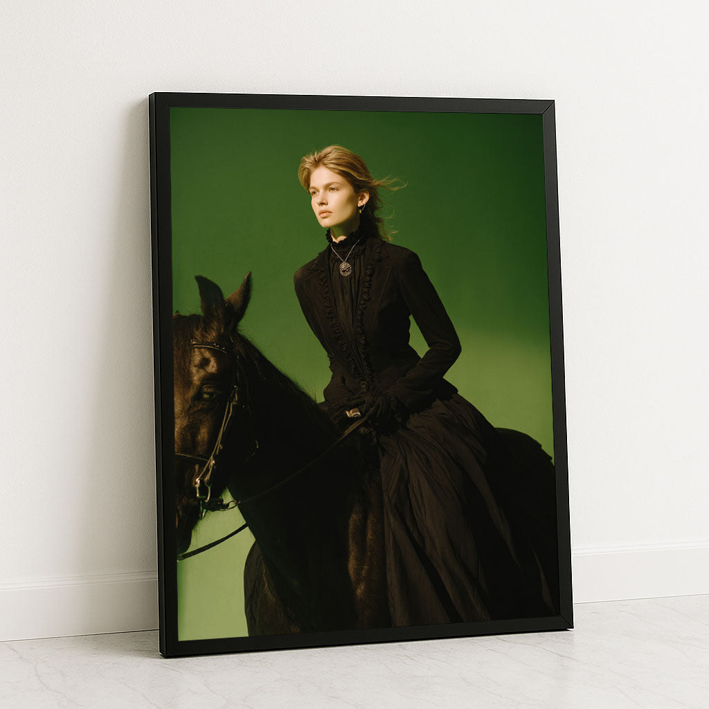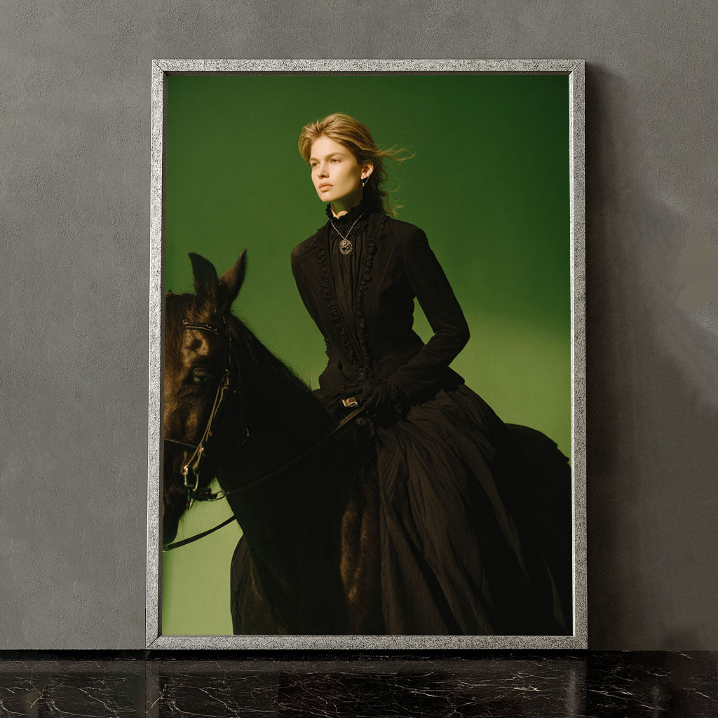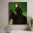 Majestic Woman Riding Black Horse Portrait Canvas Wall Art