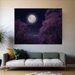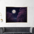 Moon over the Sea, Cherry Tree Blossoms Painting Print on Canvas