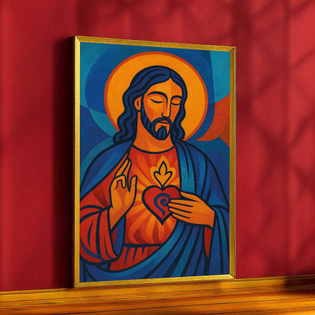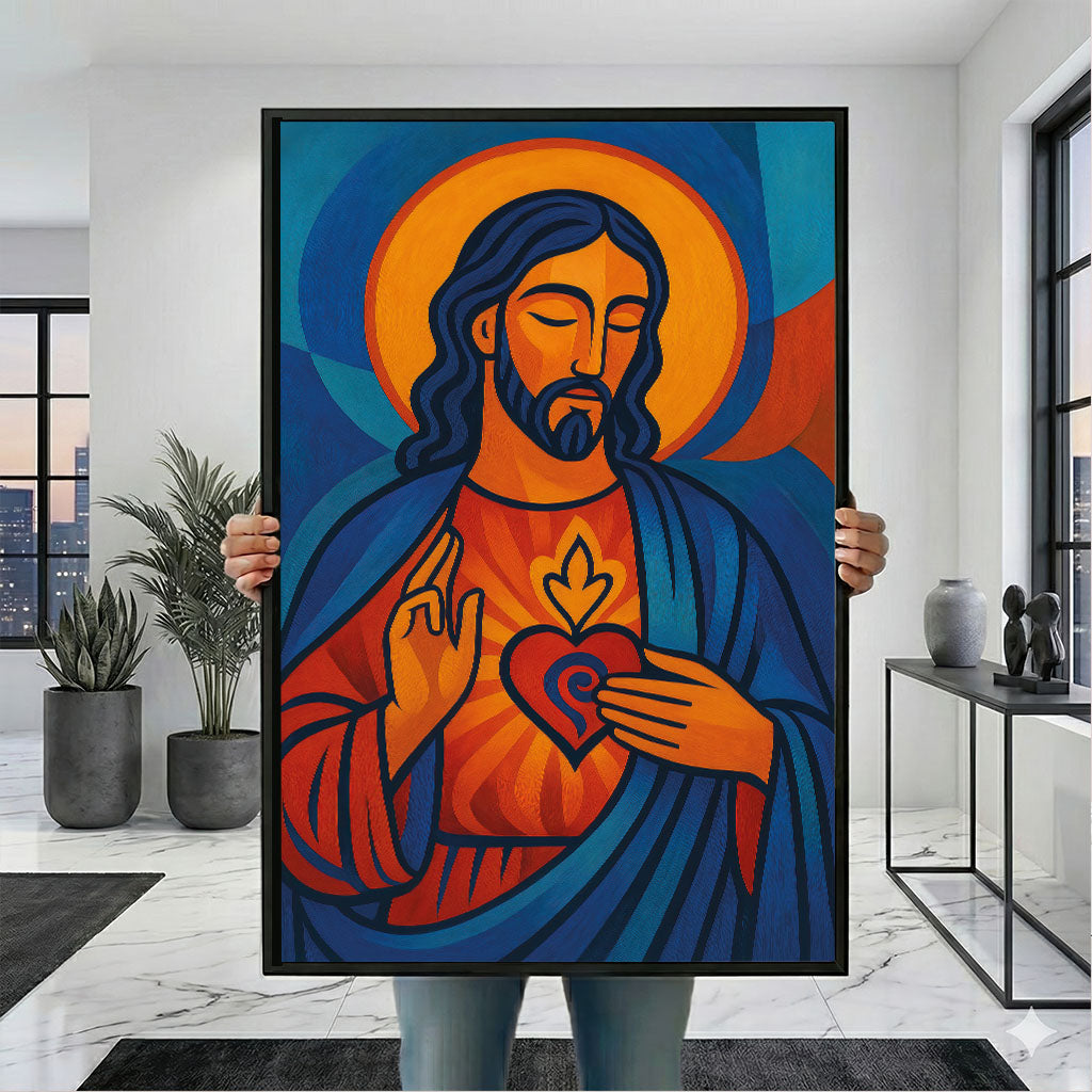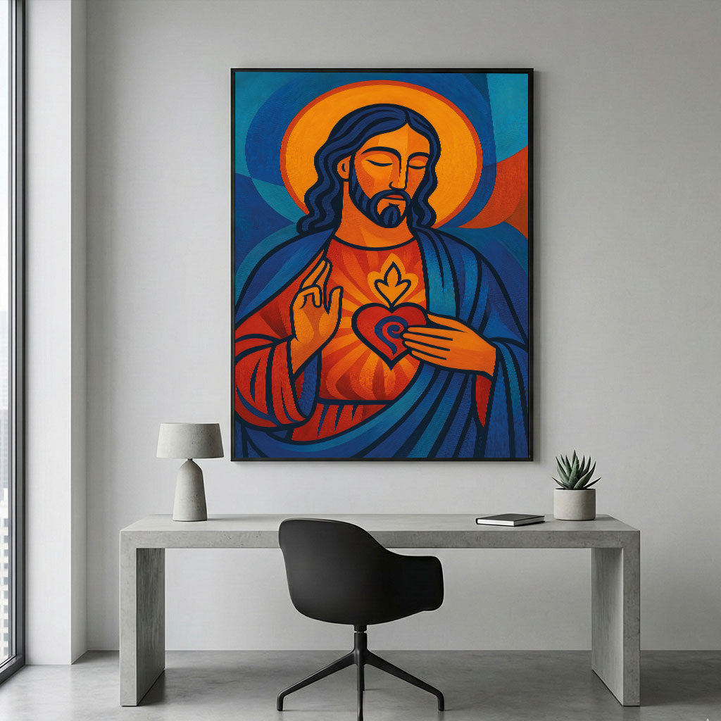 Mystical Jesus In Vibrant Sacred Heart Canvas Wall Art