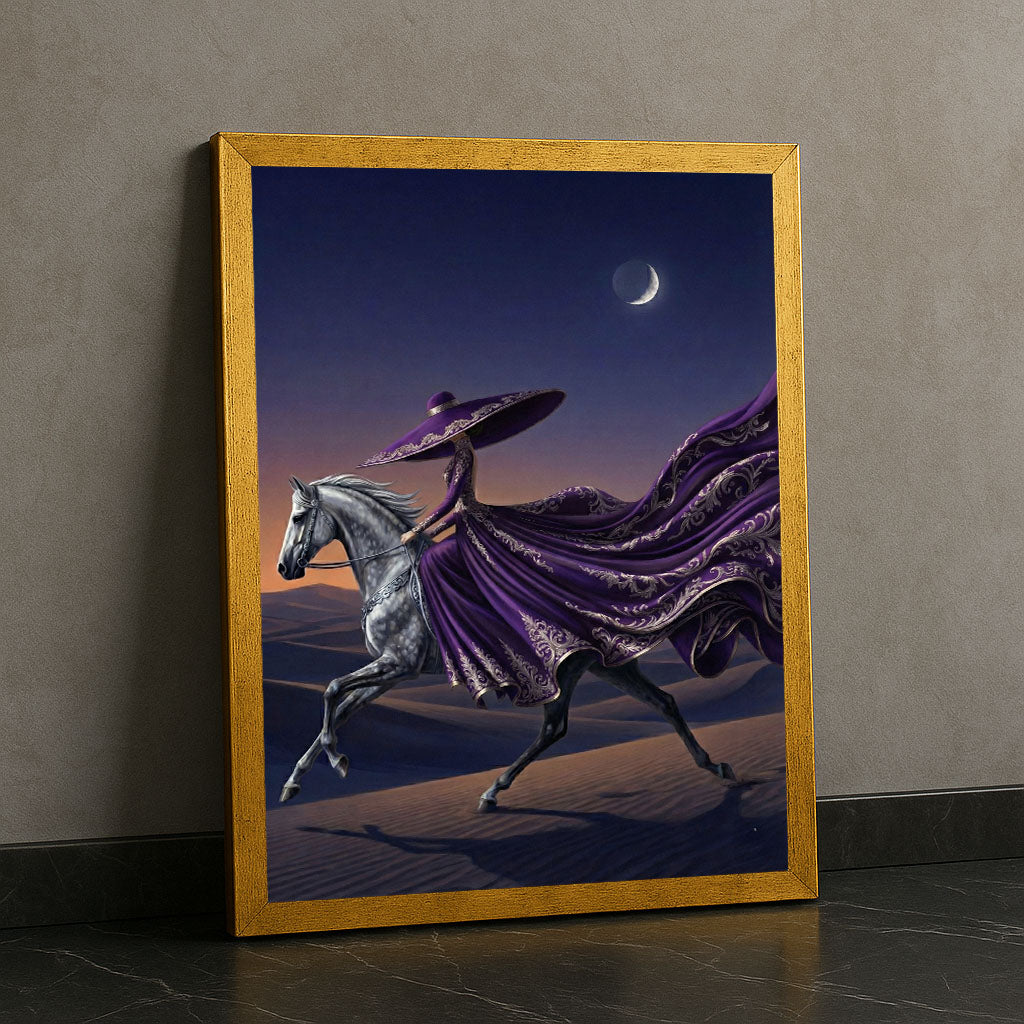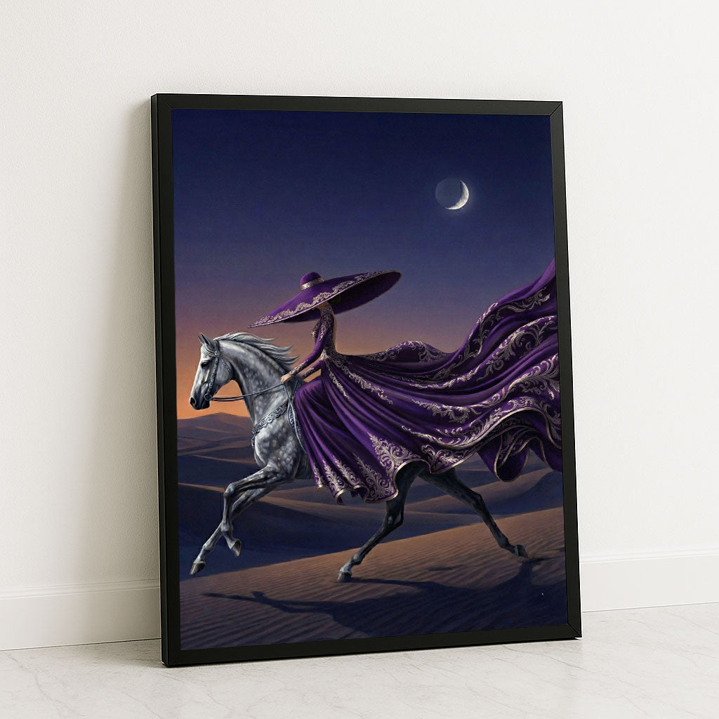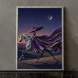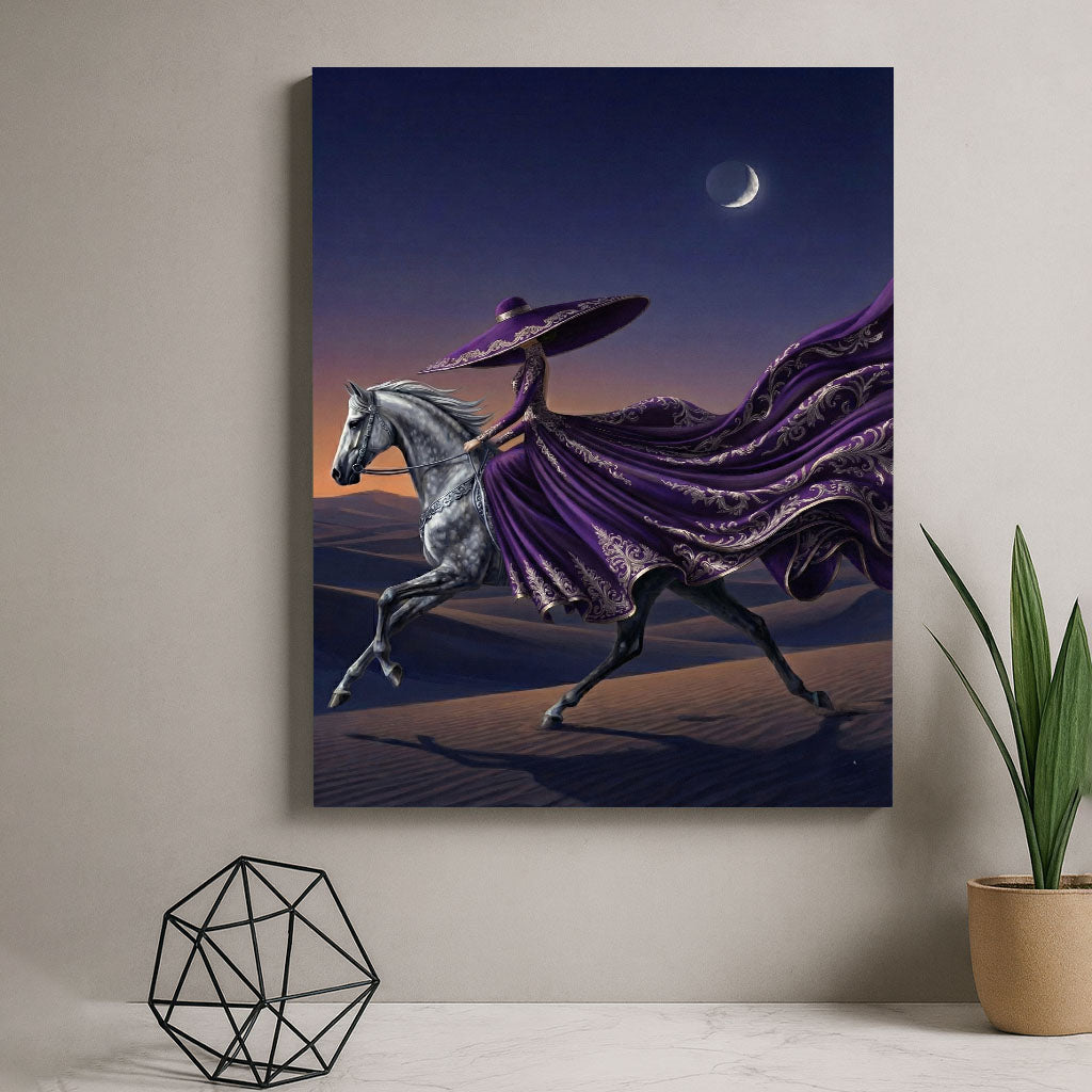 Mystical Woman In Flowing Purple Gown On Horse Canvas Wall Art