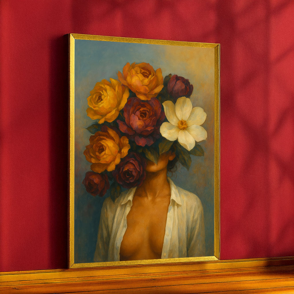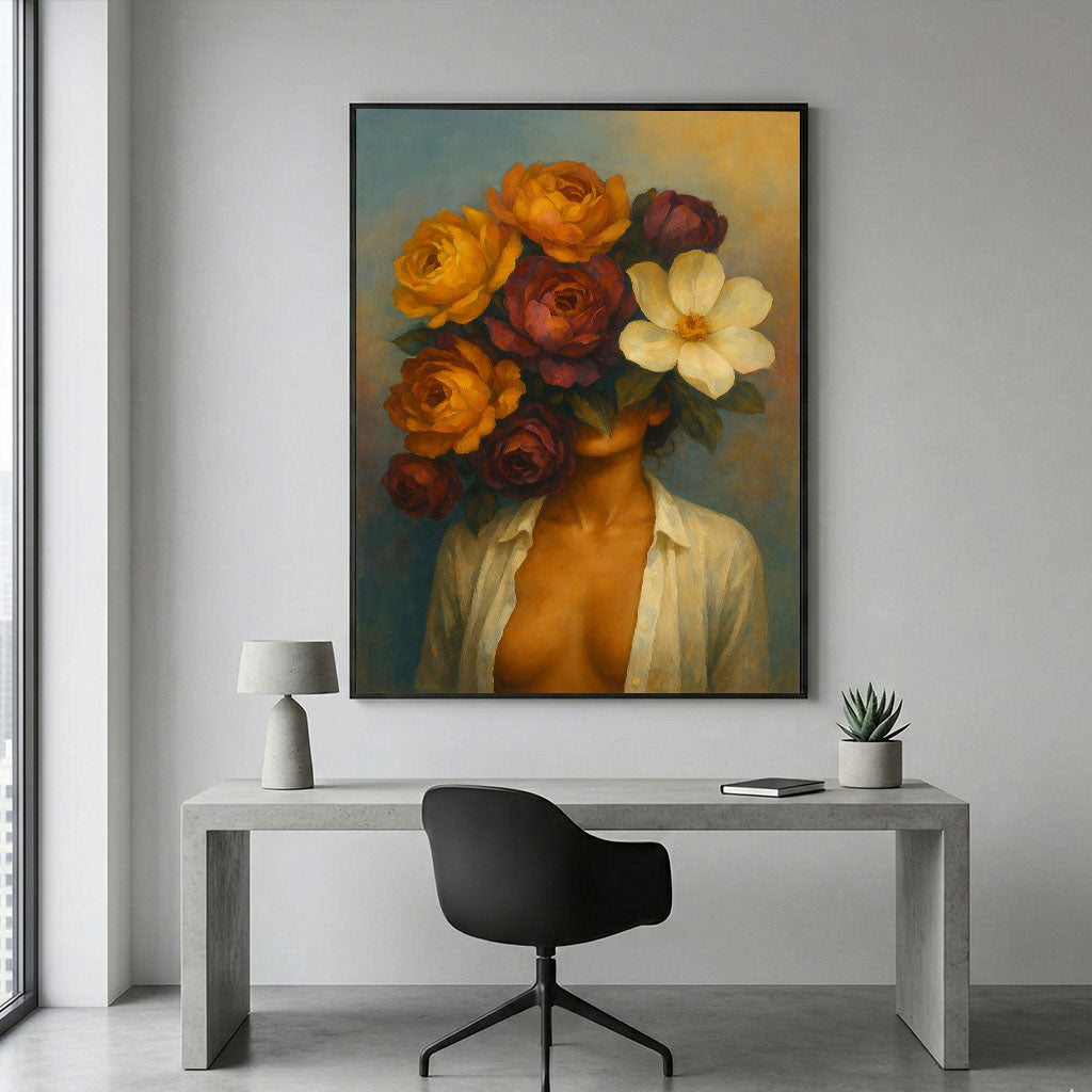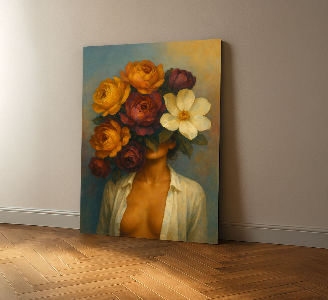 Mystical Woman With Vibrant Floral Head Canvas Wall Art