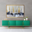 Original Sailboats Gather in The Harbor Landscape To Canvas Wall Art ,Nautical oil painting art on Canvas, Large Sailboat abstract painting