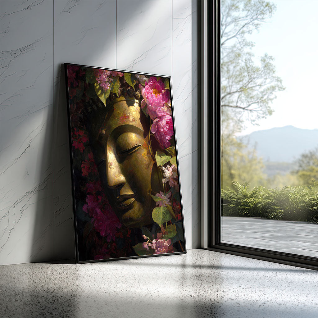 Serene Buddha Among Pink Blossoms Canvas Wall Art