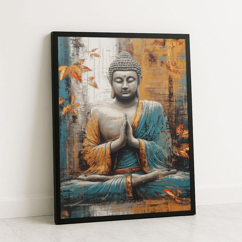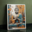Serene Buddha In Blue And Gold Meditation Canvas Wall Art