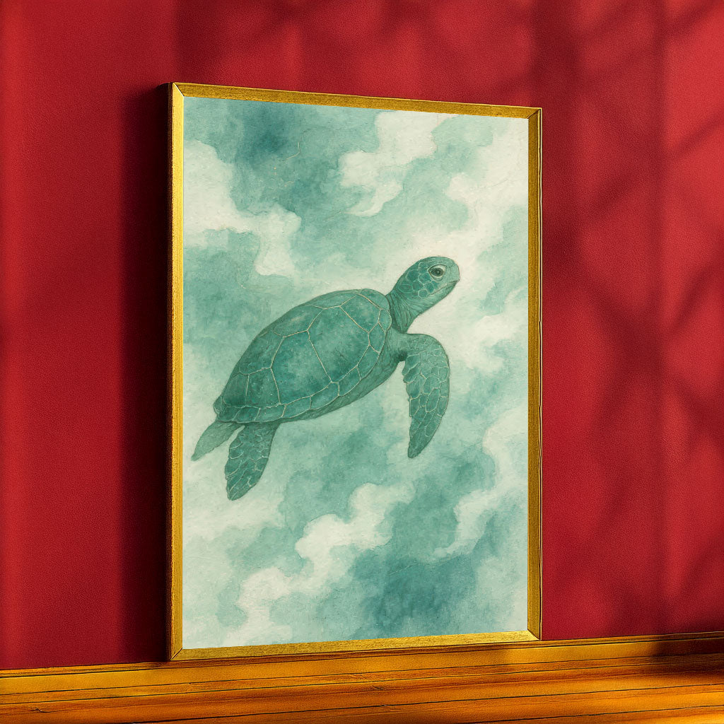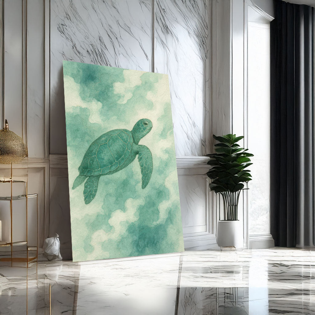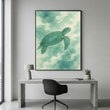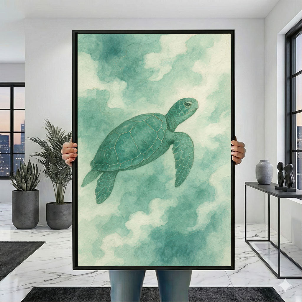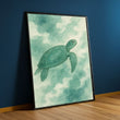 Serene Green Sea Turtle In Ocean Clouds Canvas Wall Art