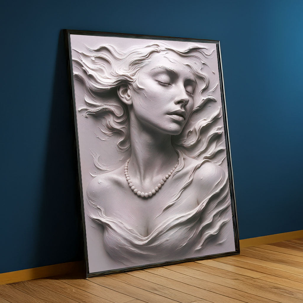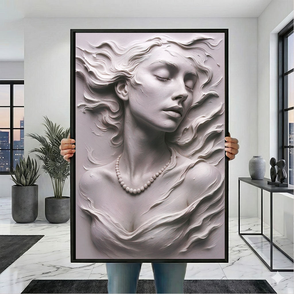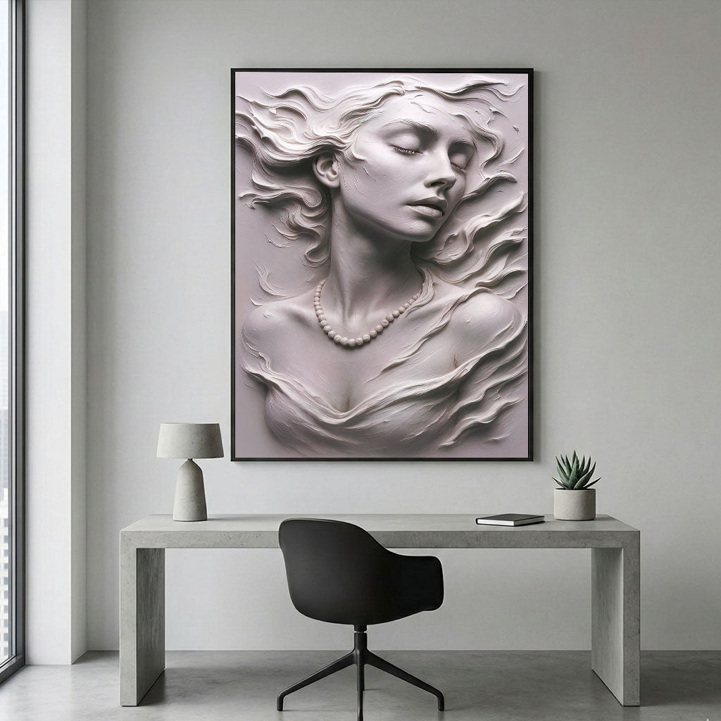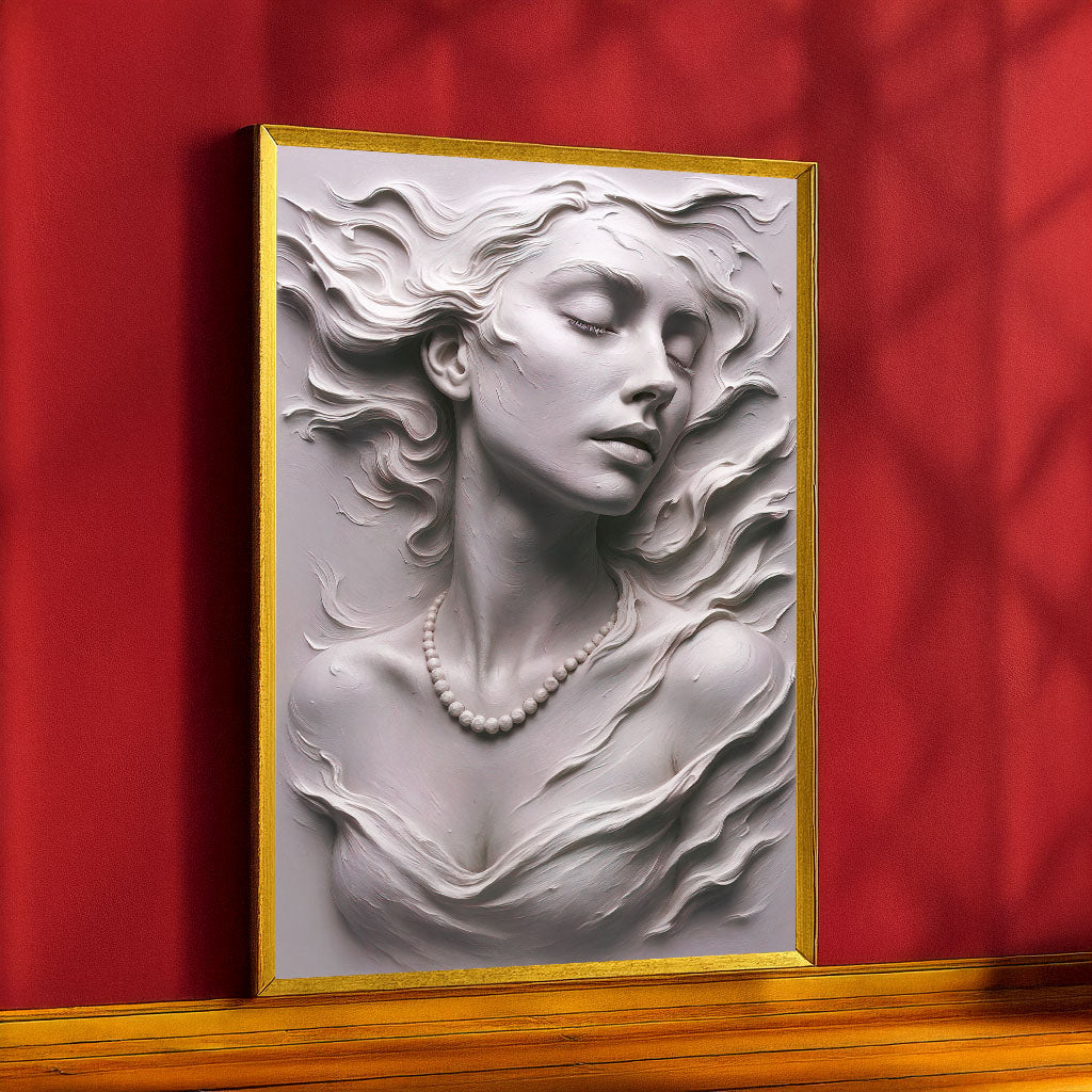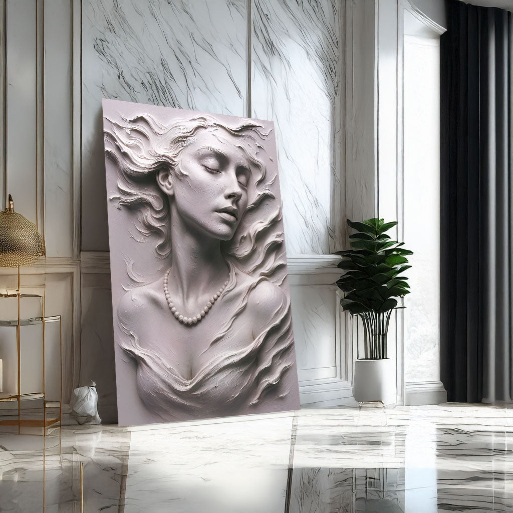 Serene Sculpted Woman With Flowing Hair Canvas Wall Art