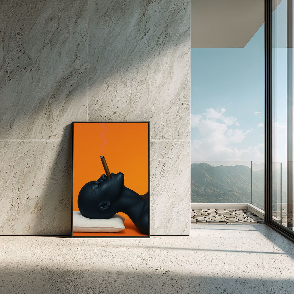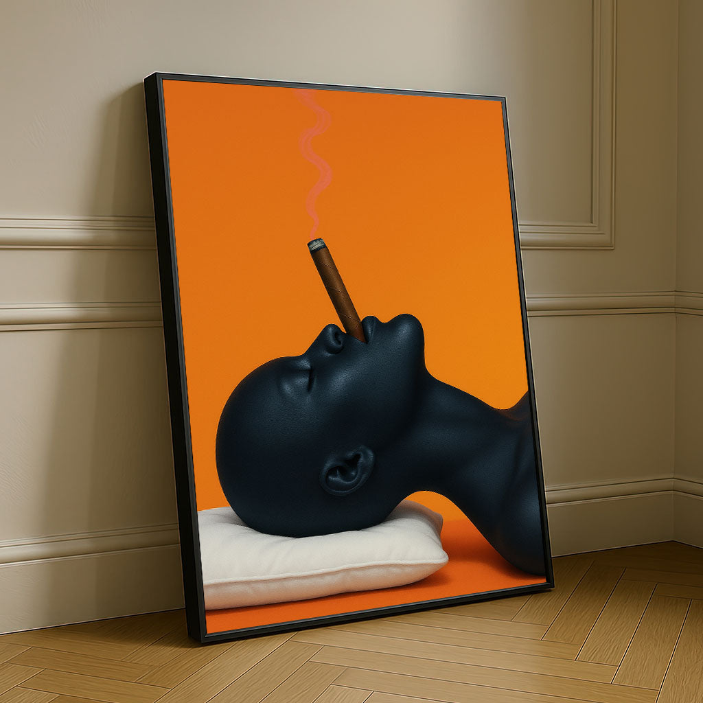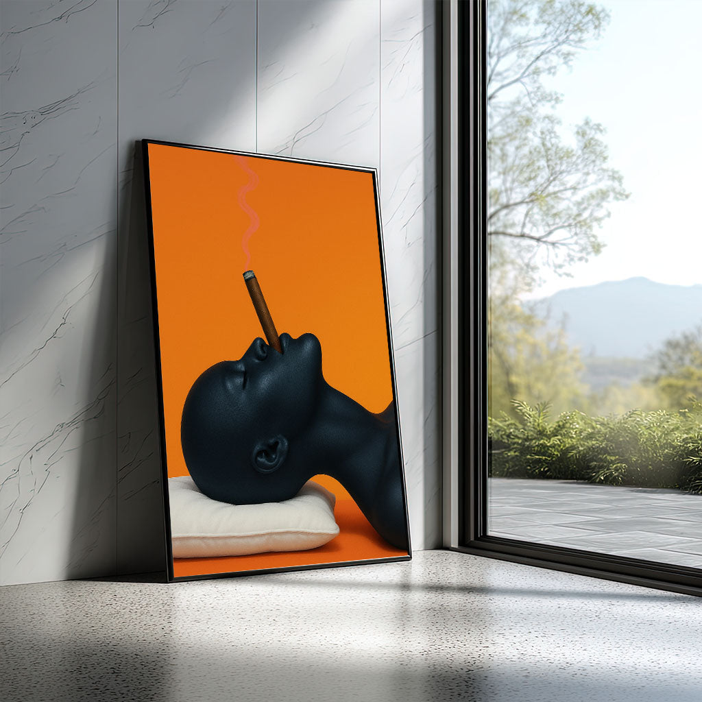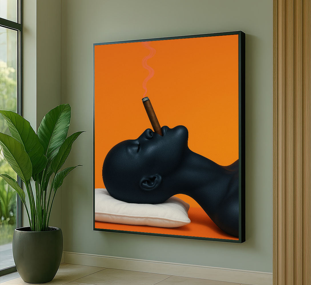 Striking Black Woman With Cigar On Orange Canvas Wall Art