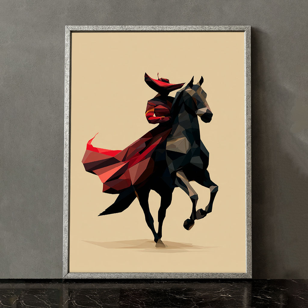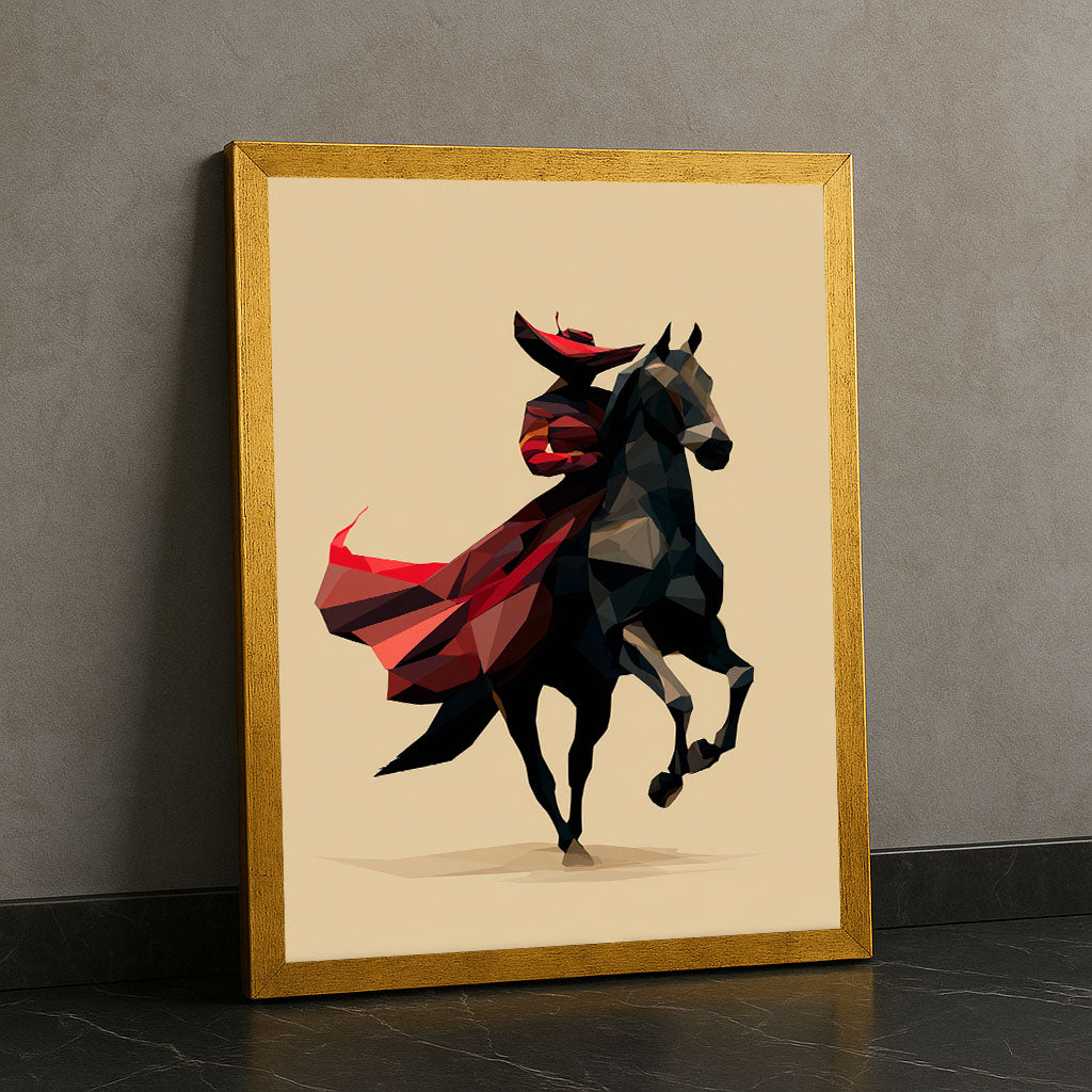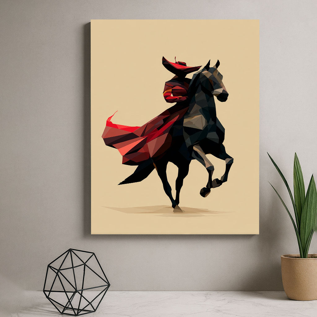 Striking Red-caped Rider On Horseback Canvas Wall Art