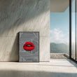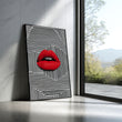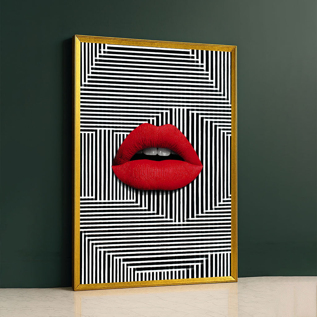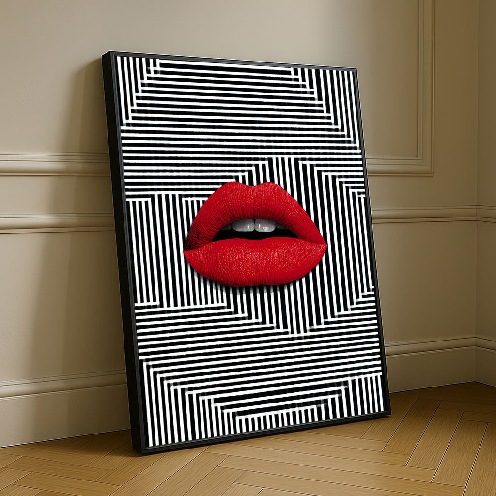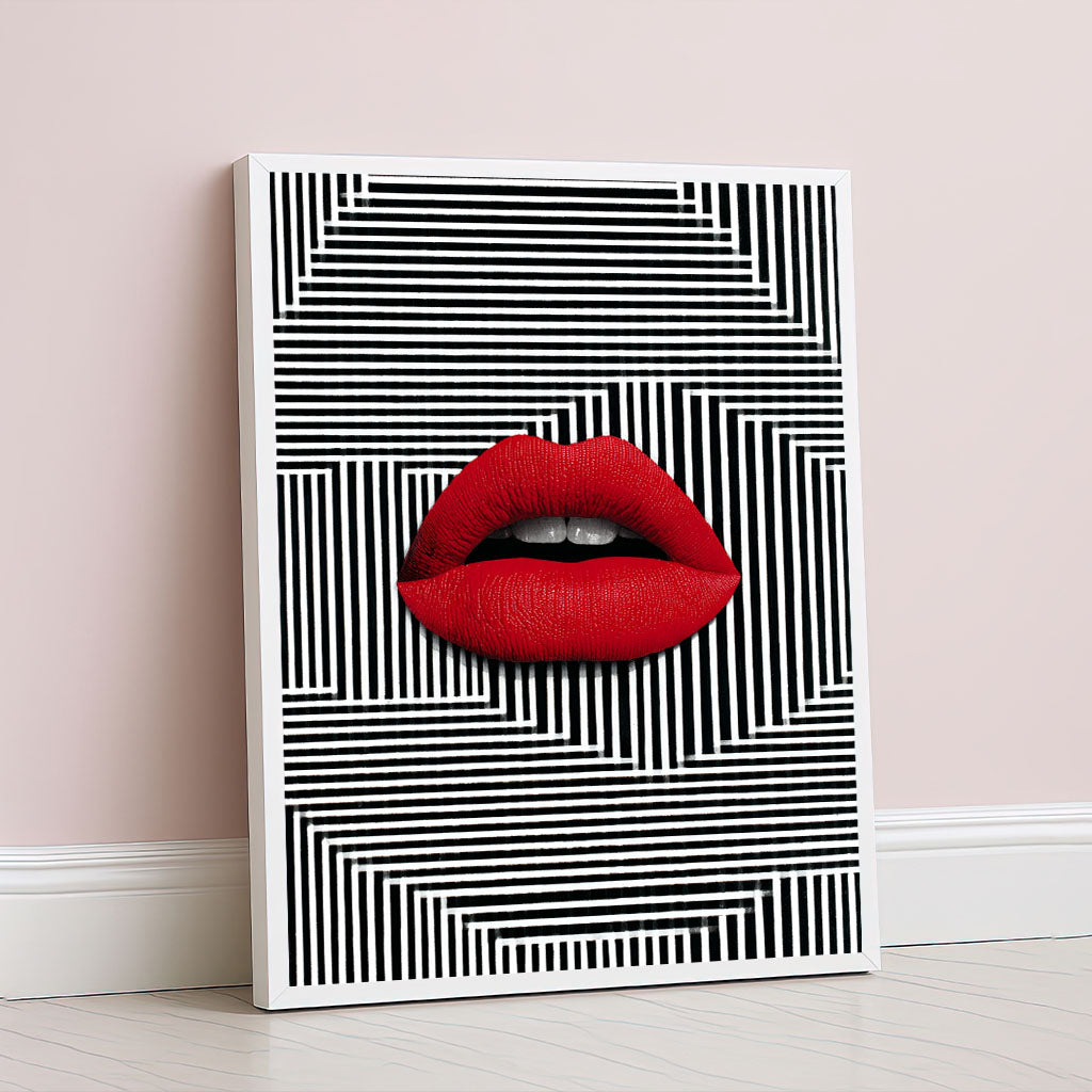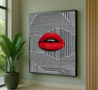 Striking Red Lips On Black And White Stripes Canvas Wall Art