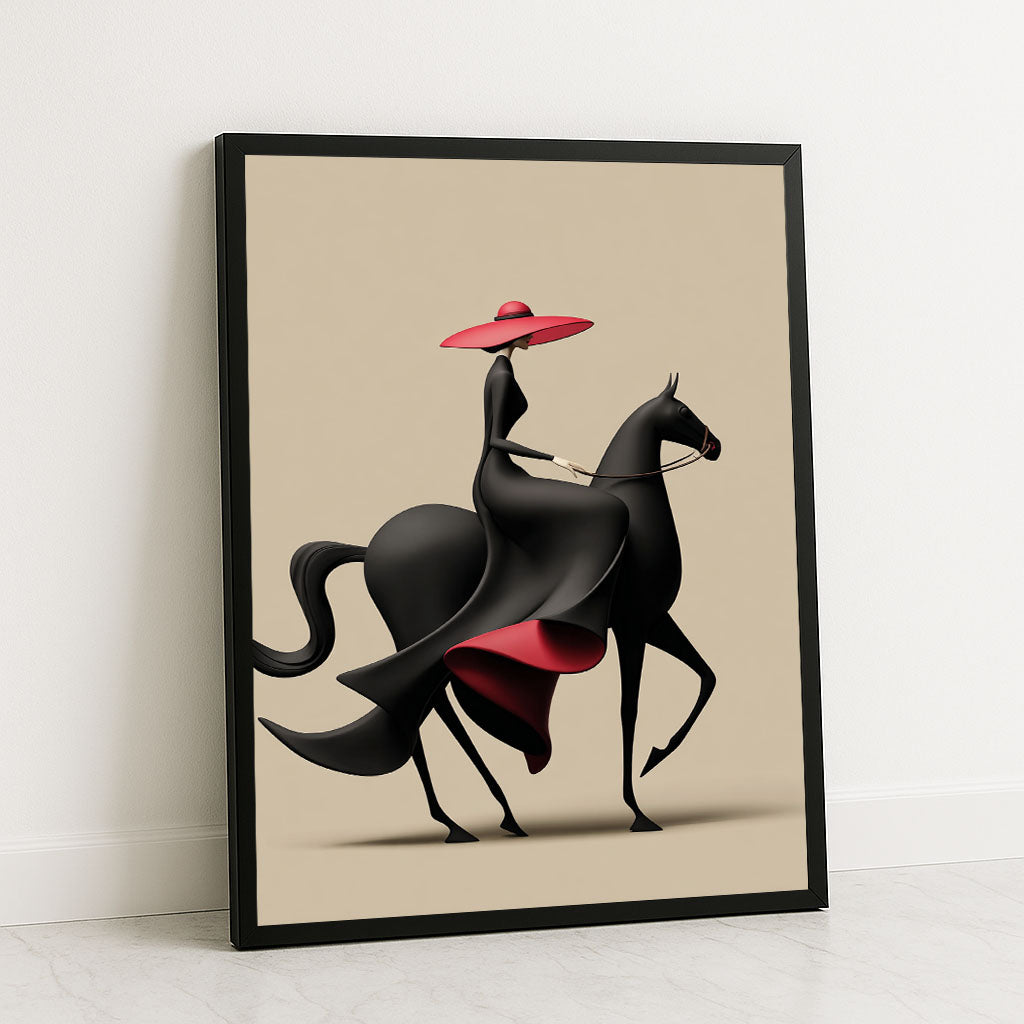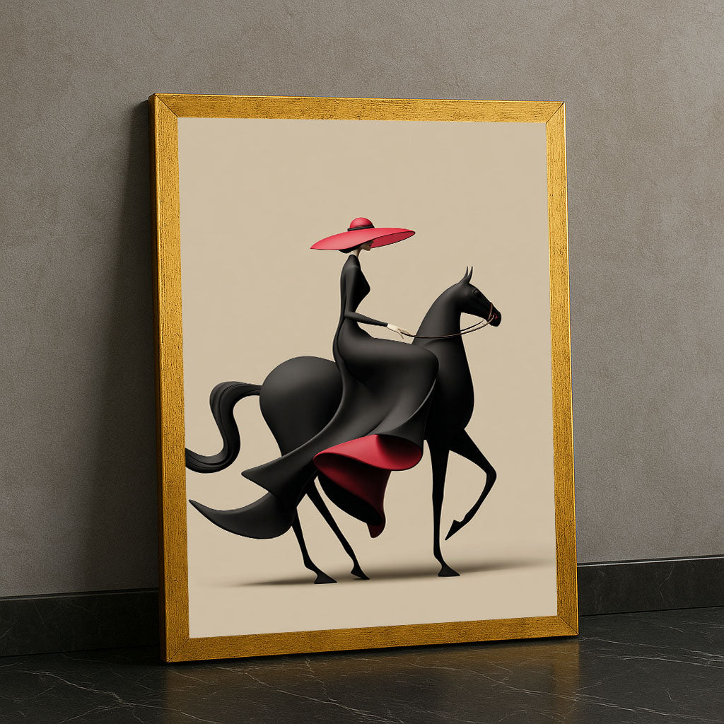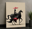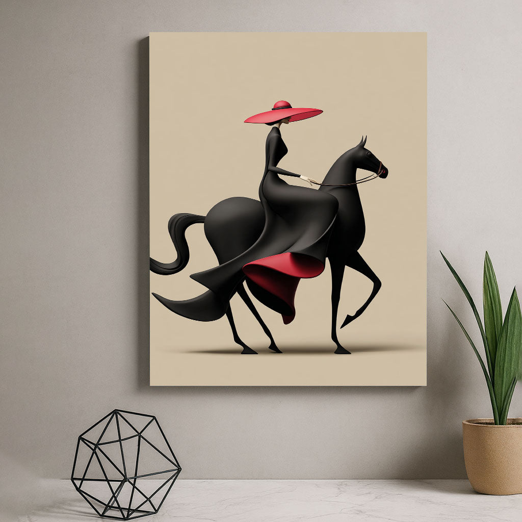 Striking Woman In Black Dress Riding Horse Canvas Wall Art