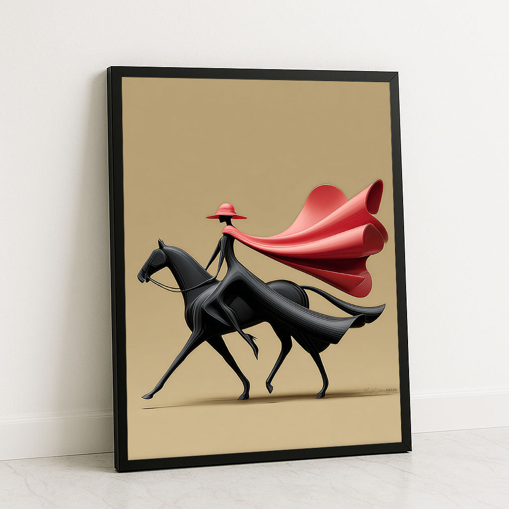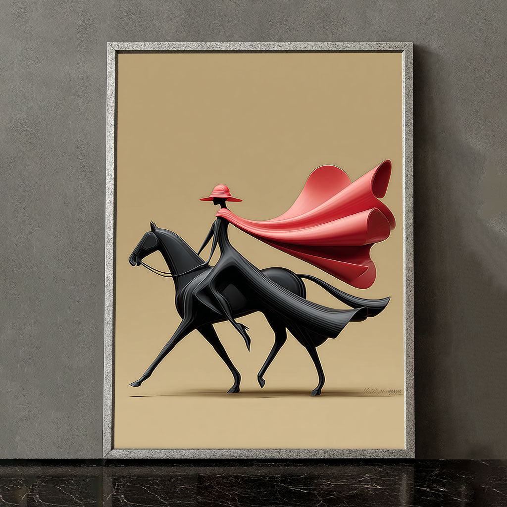 Striking Woman In Red Cape Riding Horse Canvas Wall Art