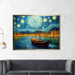 Van Gogh Style Starry Nigt Boat Ship Landscape Reproduction Canvas Wall Art