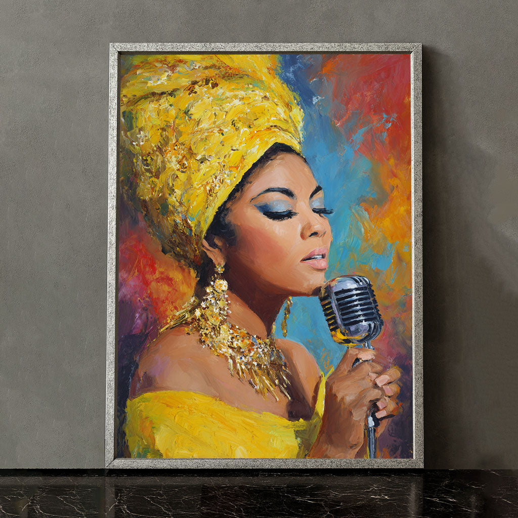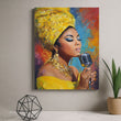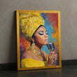 Vibrant African Woman Singing In Yellow Turban Canvas Wall Art