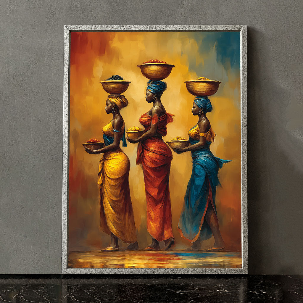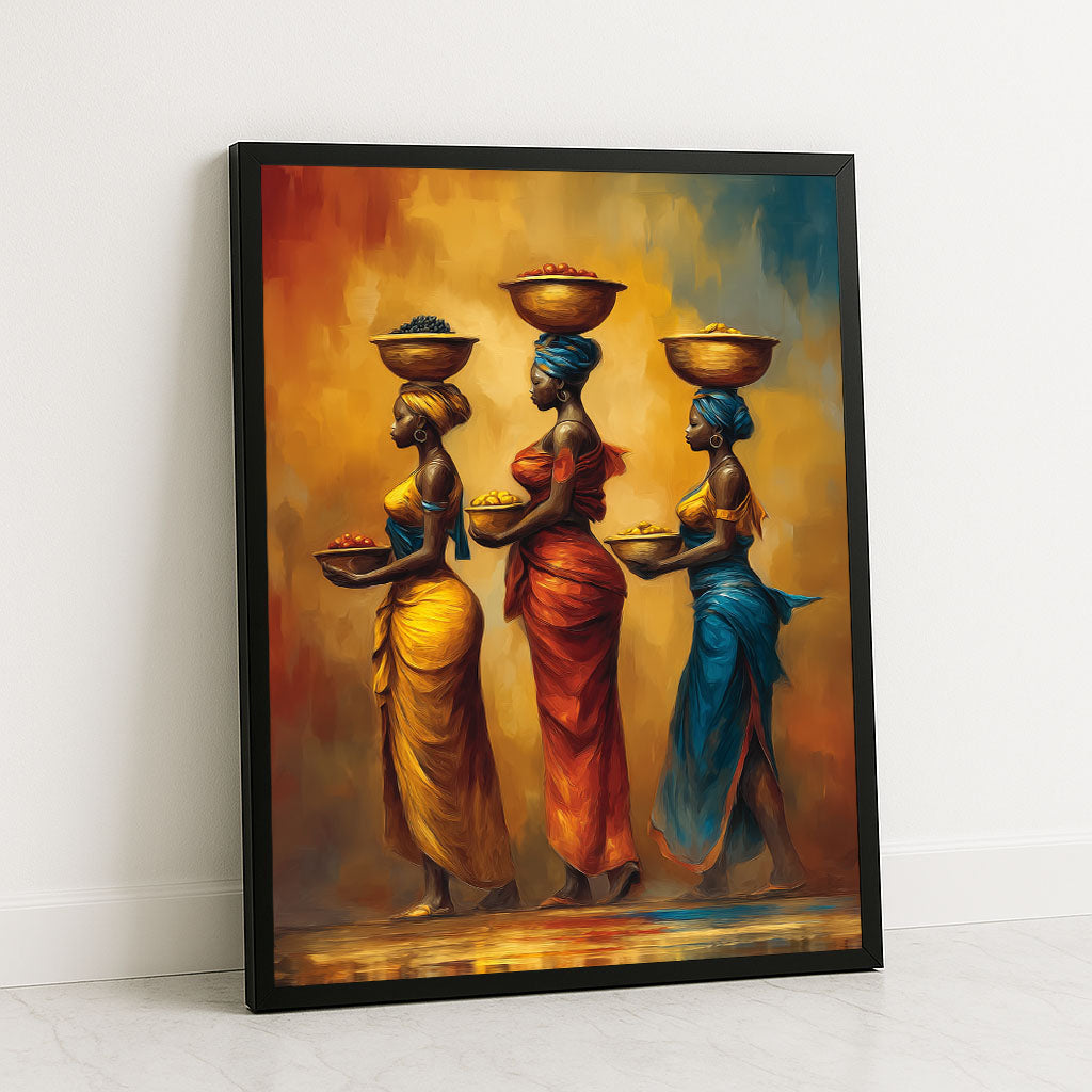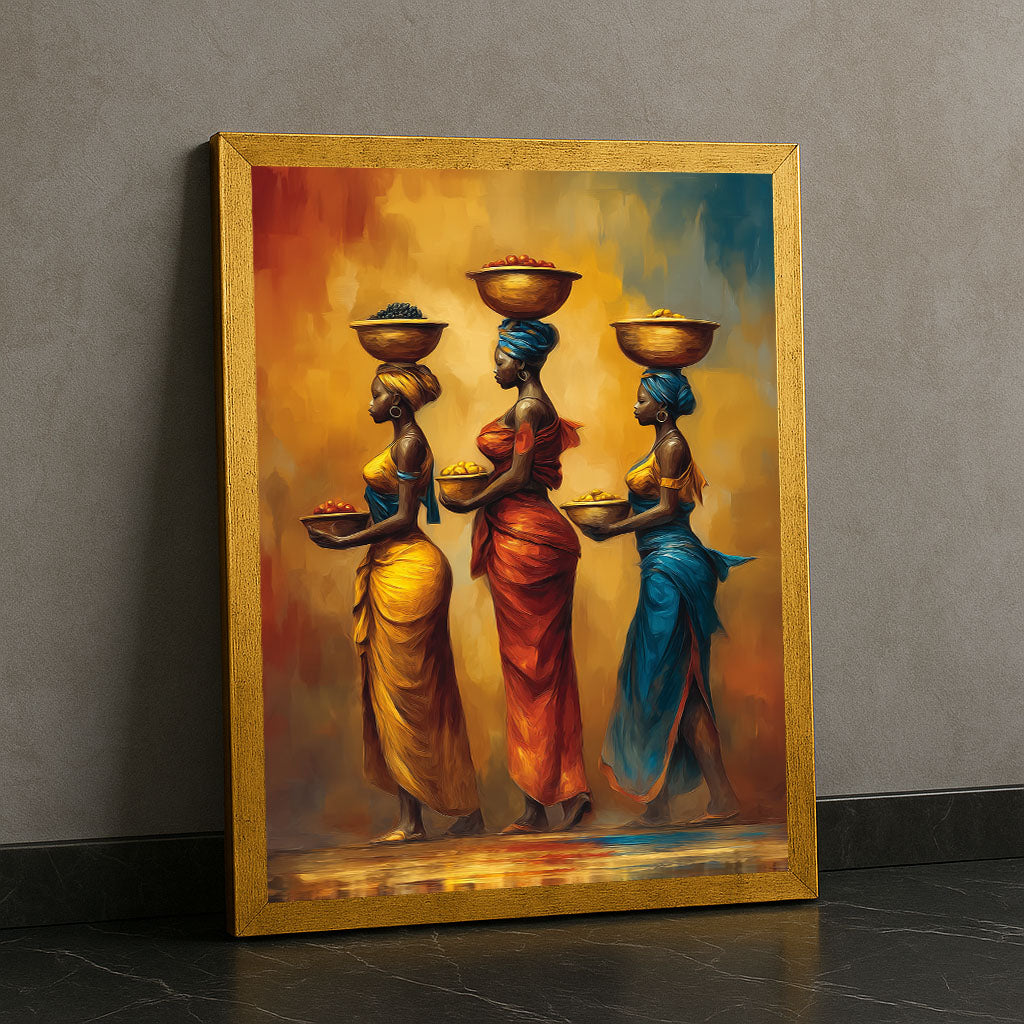 Vibrant African Women Carrying Baskets Canvas Wall Art