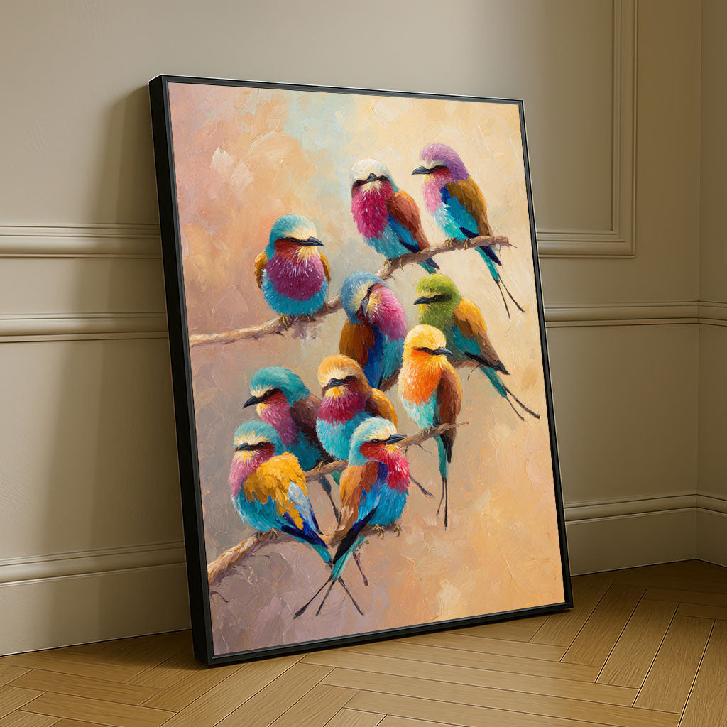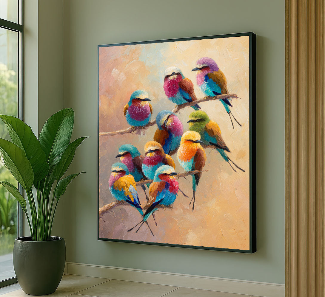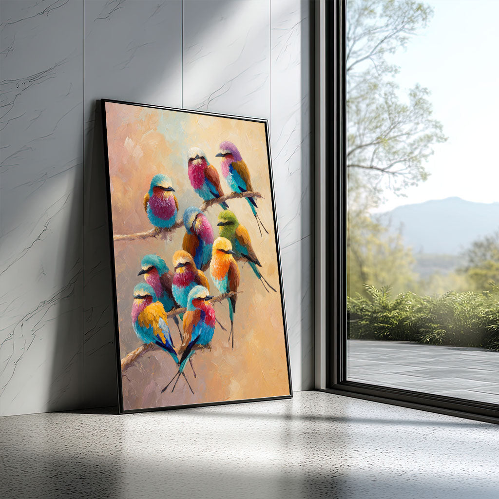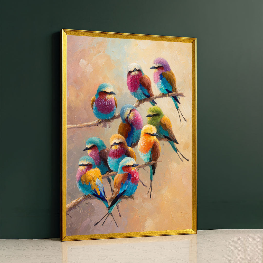 Vibrant Colorful Birds On Branch Canvas Wall Art