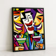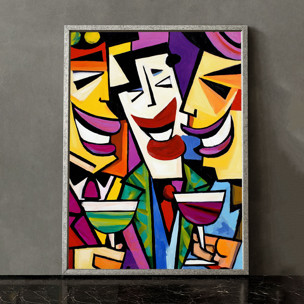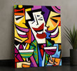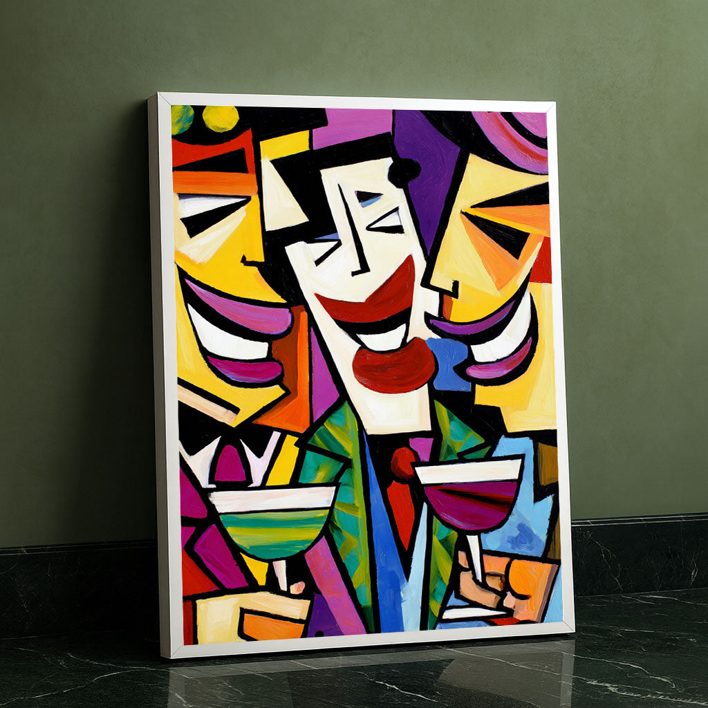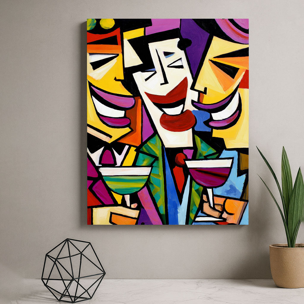 Vibrant Cubist Figures With Wine Glasses Canvas Wall Art