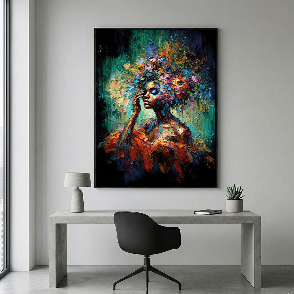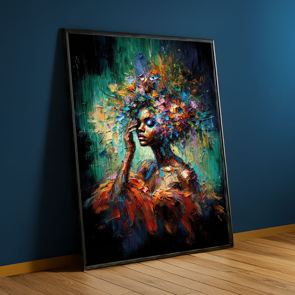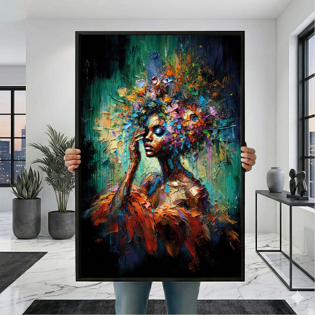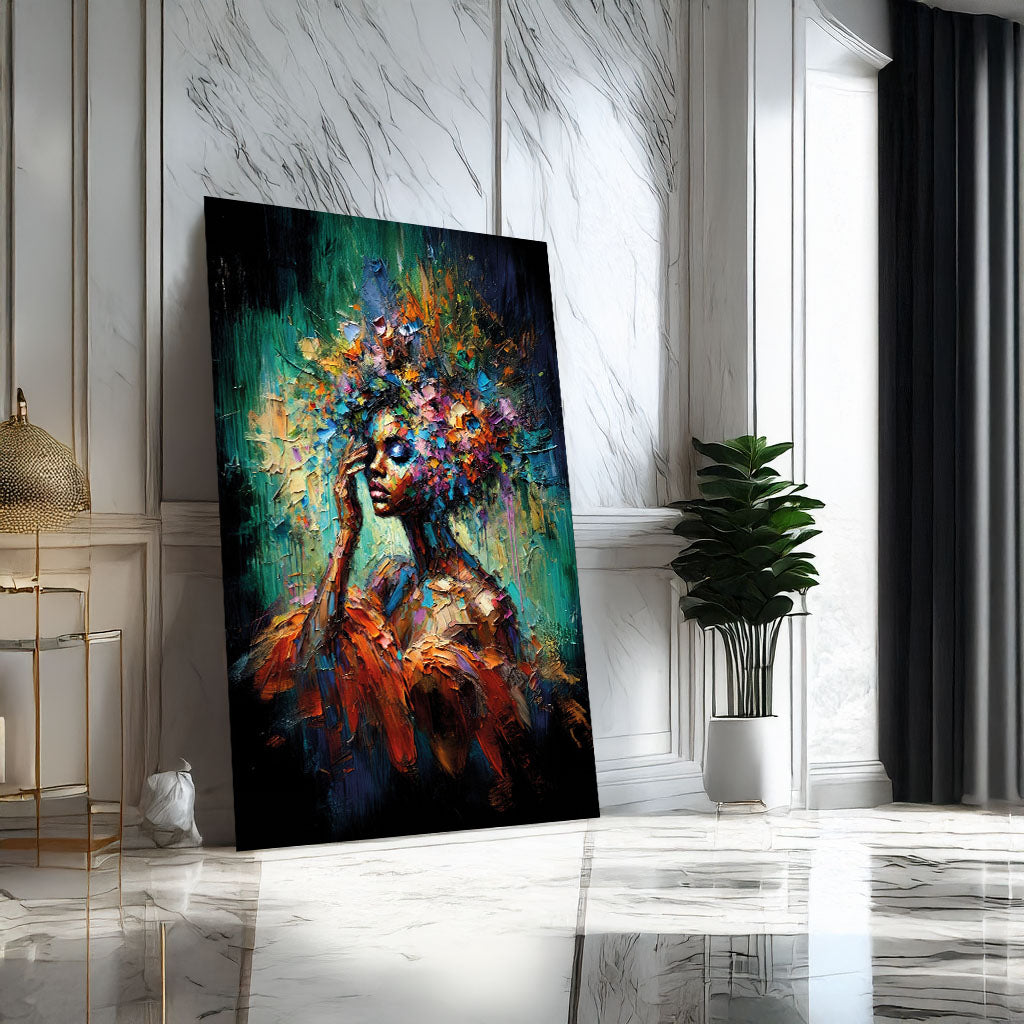Vibrant Floral-crowned Woman In Abstract Colors Canvas Wall Art